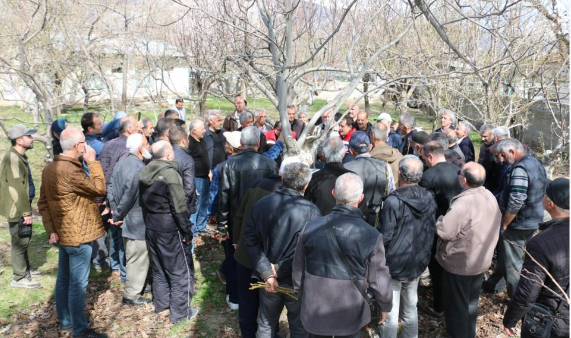 Erzincan’ın Buğdaylı Mahallesinde meyve ağaçlarında budama eğitimi düzenlendi. Çiftçilere verim ve kaliteyi artıran etkiler konusunda kapsamlı bilgiler sunuldu.