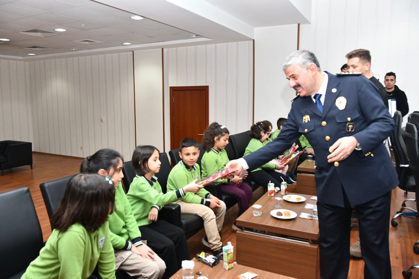 Ziyaret sırasında öğrenciler, İl Emniyet Müdürü Ortaç Şekeroğlu tarafından sıcak ve samimi bir şekilde karşılandı. Şekeroğlu, geleceğin teminatı olan çocukların bu anlamlı günde yaptıkları ziyaretin kendileri için büyük bir moral kaynağı olduğunu belirtti. Şekeroğlu kendilerini ziyarete gelen öğrencilere hediyeler verdi.