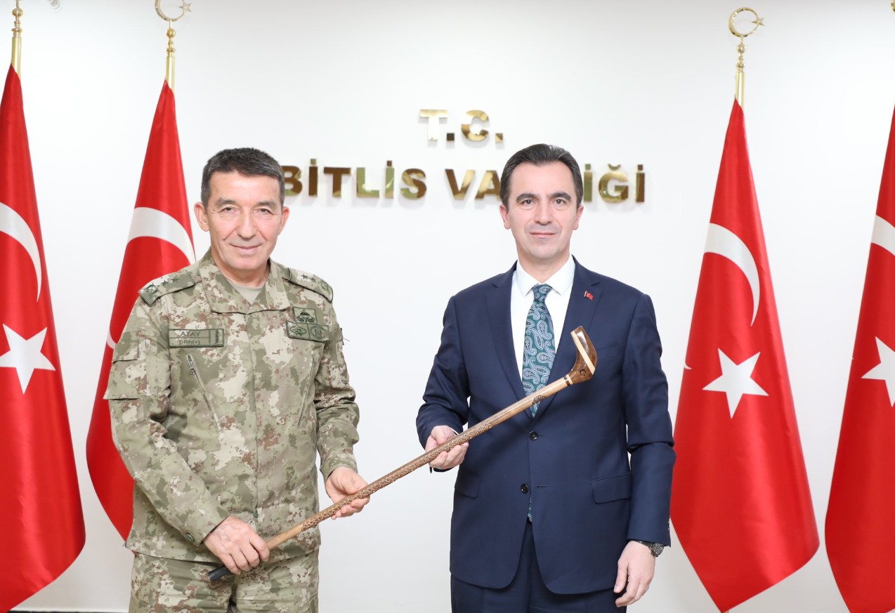 Ziyaretin sonunda Vali Karakaya tarafından Tümgeneral Atay’a Bitlis’e özgü baston hediye edildi.