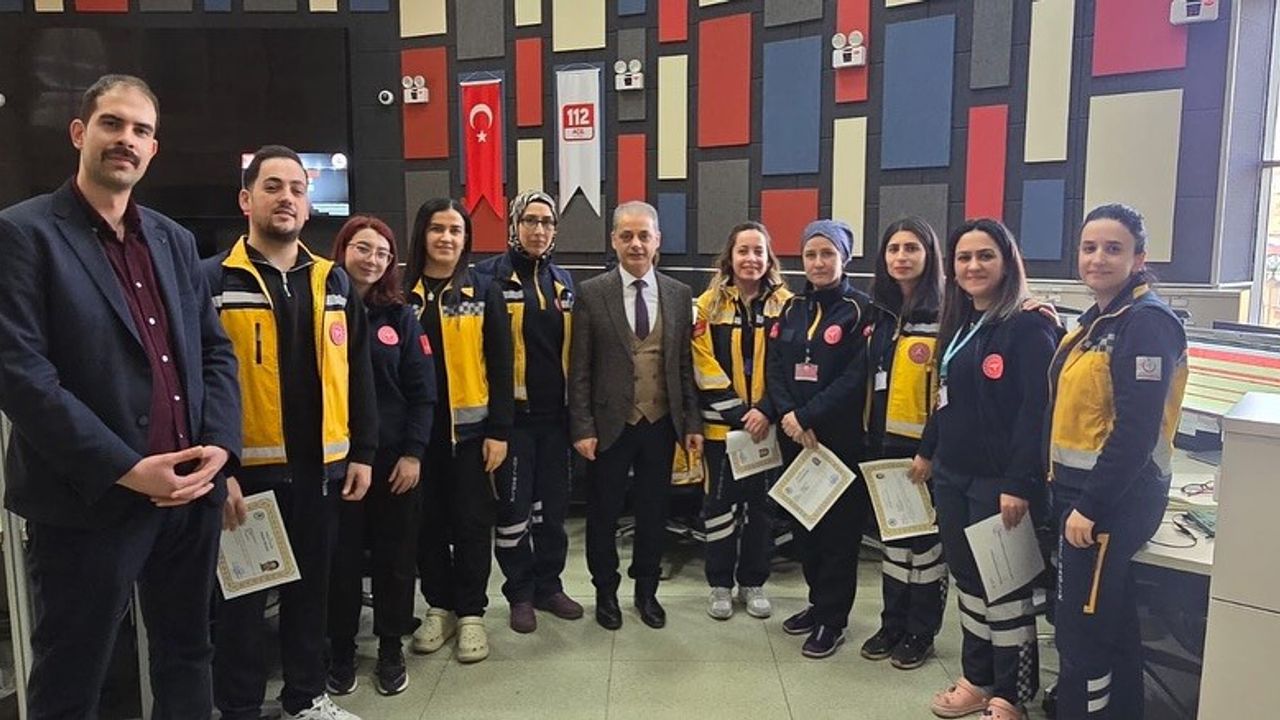 Erzincan 112 Acil Çağrı Merkezi çalışanlarına belgeleri Erzincan İl Sağlık Müdürü Dr. Cihan Tekin tarafından takdim edildi. İl Sağlık Müdürü Dr. Tekin, Vali Aydoğdu’nun selamını ileterek, özverili çalışmalarından dolayı 112 Acil Çağrı Merkezi çalışanlarına teşekkür etti, başarılarının devamını diledi.