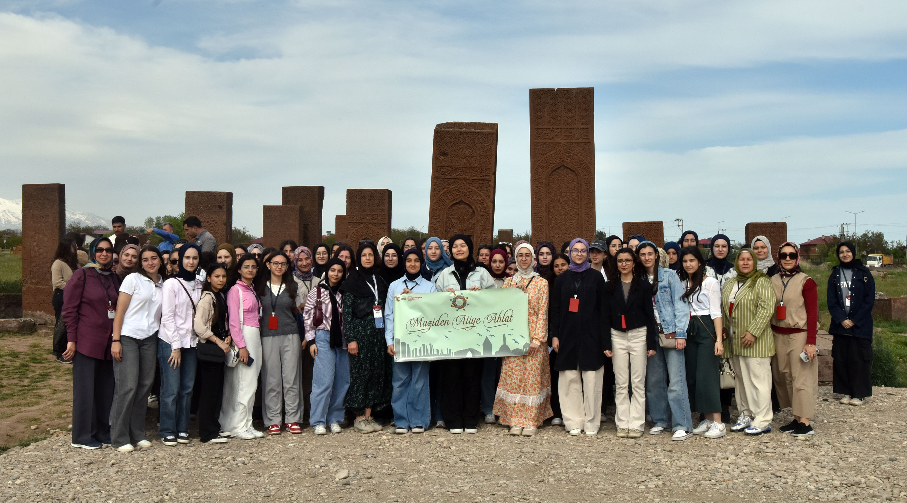 2024-2025 yılı eğitim öğretim yılının "Maziden Atiye Ahlat" kapanış programına son olarak İstanbul, Karaman, Aksaray, Nevşehir, İzmir, Aydın illerinden kız öğrenciler ağırlandı. Öğrenciler Ahlat ilçesi başta olmak üzere bölgedeki tarihi ve doğal güzellikleri görme fırsatı buldular. Programa Nevşehir’den katılan Mehlika Zeynep Bilgin, “Ahlat programı kapsamında buraya geldim. İlk kez bir Bitlis’e Ahlat'a geldim. Cumhurbaşkanlığı Külliyesi'nde konaklıyoruz. Oradayken pek çok sanatsal, kültürel eğitimler alıyoruz. Orada etkinlikler yapıyoruz. Burada pek çok akranımla beraber olmak, burada Türk dünyası için, tarihimiz için çok önemli şeylere şahitlik etmiş bir bölgede bulunmak. Burada onların yaşadığı yerlerde gezmek, buradaki tarihi hissetmek gerçekten de çok etkileyici. Buradaki mezar taşlarına baktığımızda o insanların yaşantılarını düşünmek, onların da bizim gibi buralarda dolaştığını, hayaller kurduğunu düşünmek gerçekten de beni çok etkiledi” dedi.
