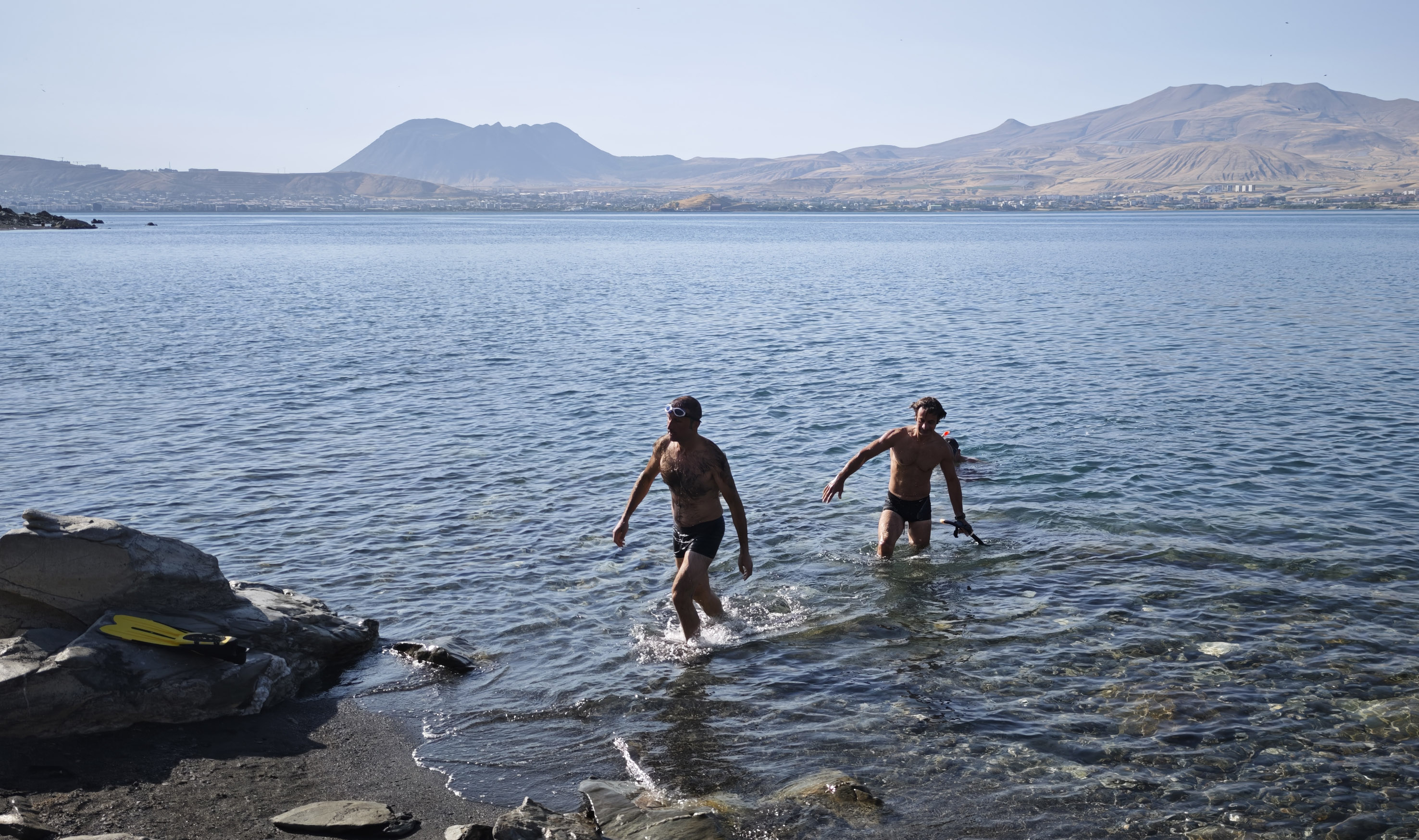 Bitlis’in Tatvan ilçesinde 3 yüzücü, 30 Ağustos Zafer Bayramı’nı özel bir etkinlikle kutladı. Adnan Bilgin, Cihan Doğar ve İsmail Kara, Tatvan İskelesi’nden Van Gölü’ne dalış yaparak zorlu bir parkura çıktı.