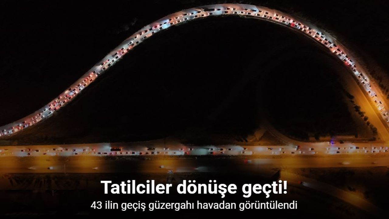 Kurban Bayramı’nın 3. gününde tatilcilerin dönüşe geçmesiyle birlikte 43 ilin geçiş güzergahı "kilit kavşak" Kırıkkale’de yaşanan trafik yoğunluğu havadan görüntülendi.