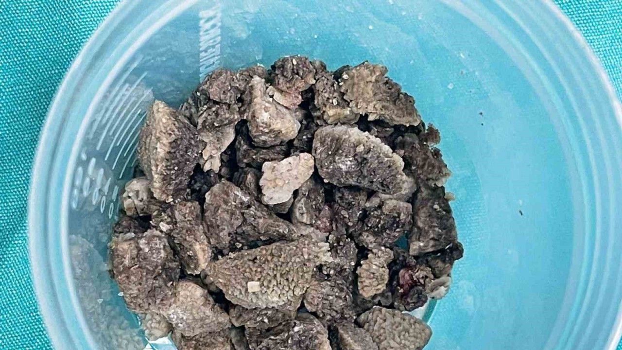 Malatya Eğitim ve Araştırma Hastanesi’nde 58 yaşındaki Ülkü Sabaner’in böbreğini tamamen dolduran 8 santimetrelik "geyik boynuzu" (staghorn) böbrek taşı, kapalı yöntemle gerçekleştirilen başarılı bir operasyonla çıkarıldı.