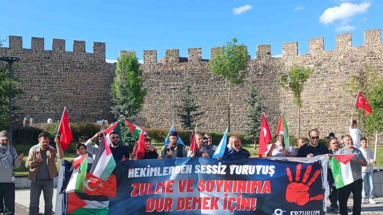 Erzurum’da görev yapan hekimler, sağlık çalışanları ve tıp fakültesi öğrencileri, İsrail’in Gazze’ye yönelik saldırılarını protesto etmek için bir kez daha yürüdüler.
