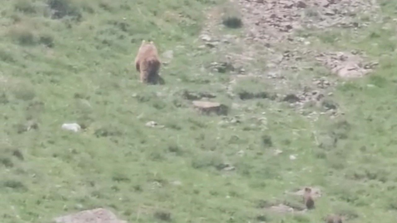 Hakkari ve Yüksekova ilçesi arasında yer alan Doğanyurt köyünde havaların ısınmasıyla kış uykusundan uyanan bir anne ayı ve üç yavrusu, yaylada gezinirken görüntülendi.