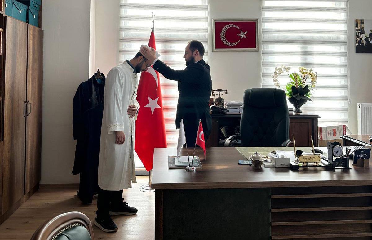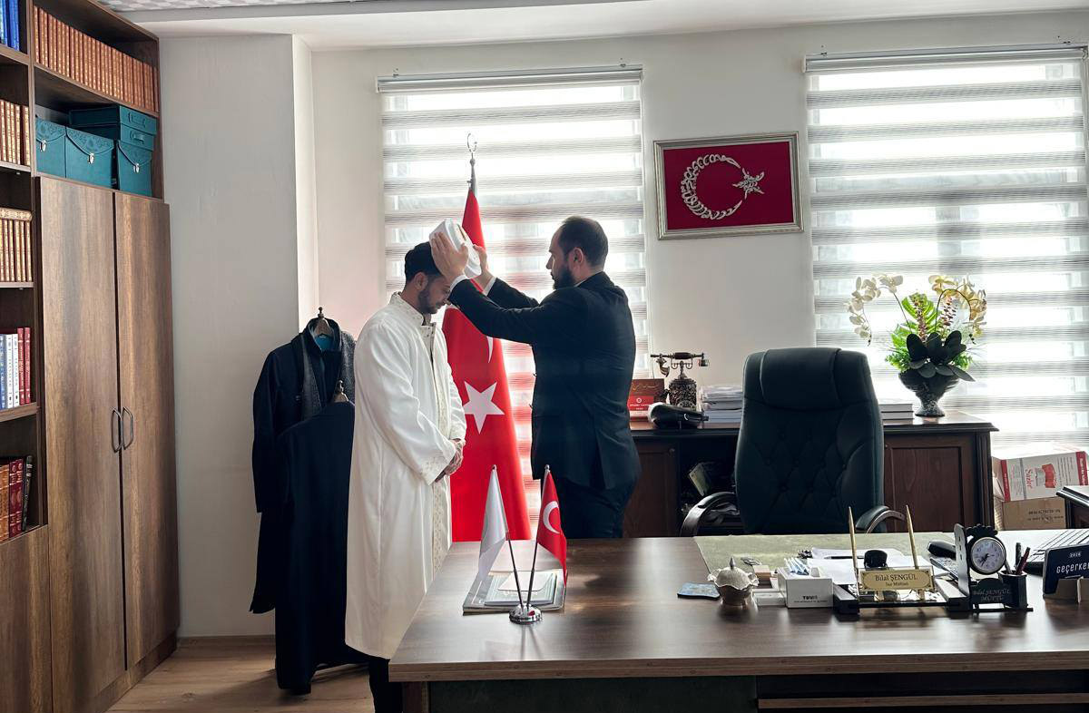 Merasim kapsamında, aday din görevlilerine cübbe ve sarıkları Müftü Şengül tarafından tek tek giydirildi.