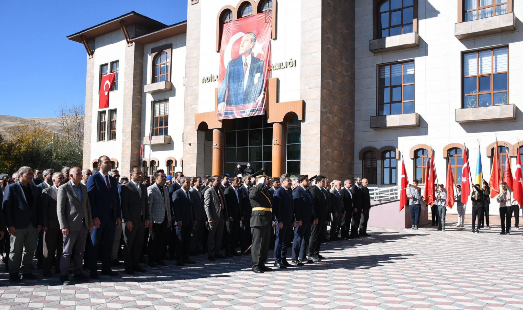Bitlis’in Adilcevaz ilçesinde 29 Ekim Cumhuriyet Bayramı kapsamında çelenk sunma töreni düzenlendi. Cumhuriyetin ilanının 102. yılı dolayısıyla gerçekleştirilen tören, Adilcevaz Kaymakamı Nurhalil Özçelik’in Atatürk Anıtı’na çelenk sunmasıyla başladı. Saygı duruşunda bulunulmasının ardından İstiklal Marşı okundu. İlçe protokolü, öğretmenler, öğrenciler ve vatandaşların katıldığı tören, milli birlik ve beraberlik vurgusuyla sona erdi.