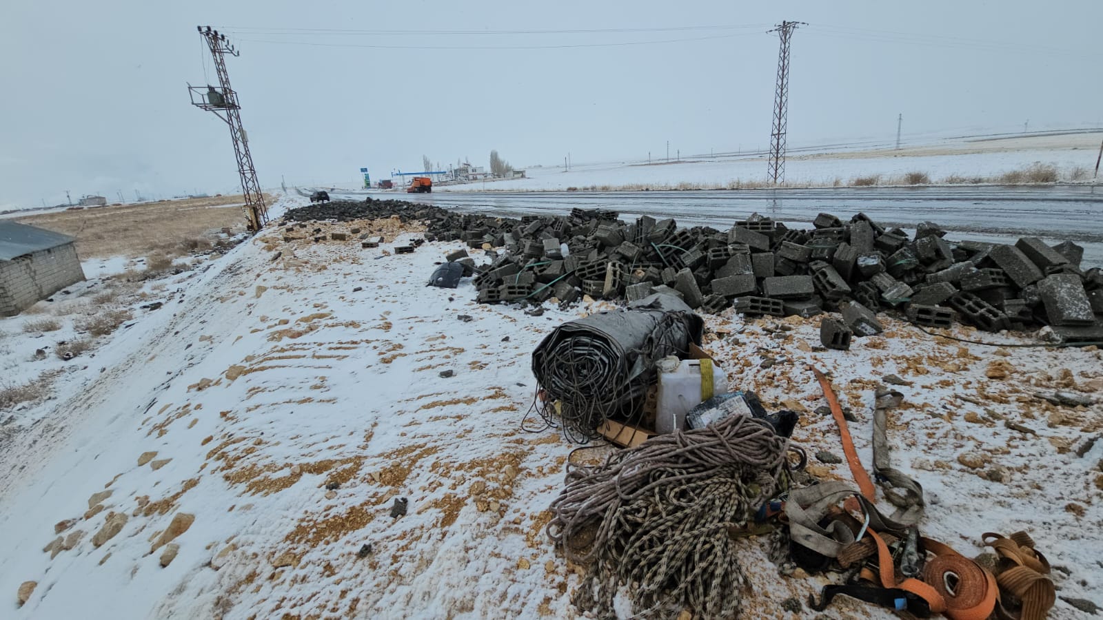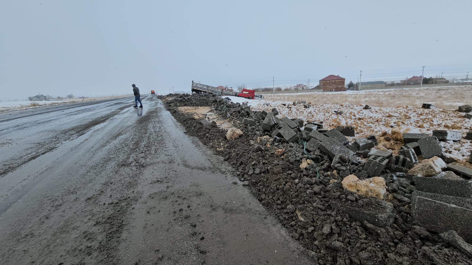 Kaza sonrası tırın dorsesinde bulunan briketler etrafa saçılırken, polis ekipleri bölgede güvenlik önlemi aldı. Olay yerine ayrıca gümrük muhafaza yetkililerinin çağrıldığı öğrenildi.