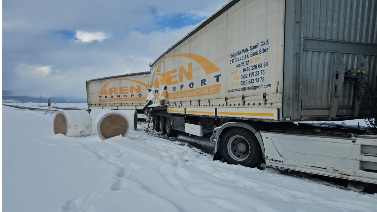 Bitlis’in Adilcevaz ilçesinde Adilcevaz-Erciş karayolunda seyir halindeki kağıt yüklü 76 AB 906 plakalı tıra, aynı yönde ilerleyen 76 DS 344 plakalı başka bir tır arkadan çarptı. Çarpmanın etkisiyle araçlarda maddi hasar oluştu, bazı kağıt balyaları yola savruldu.