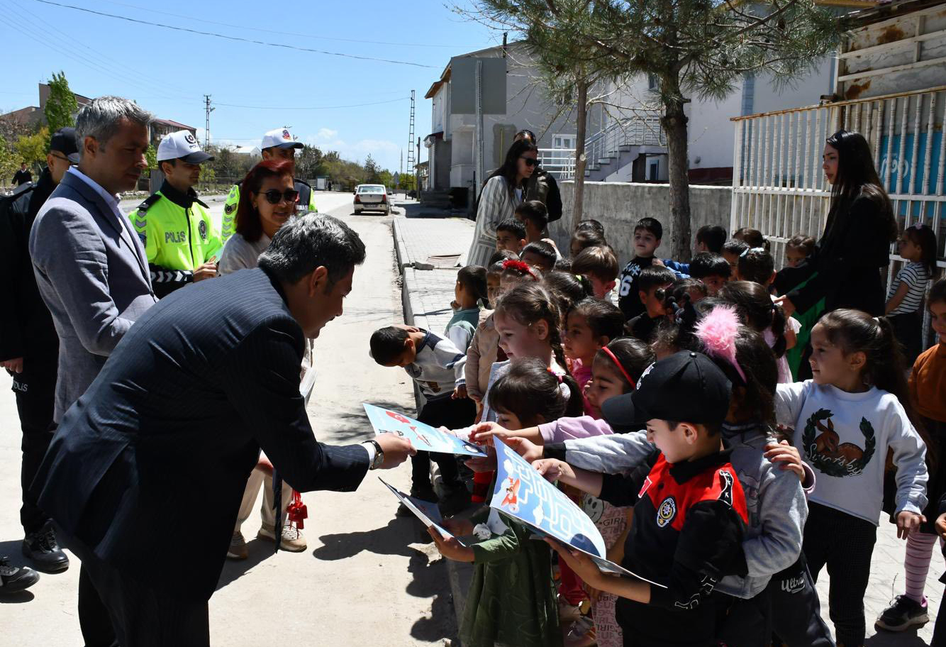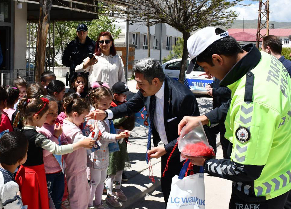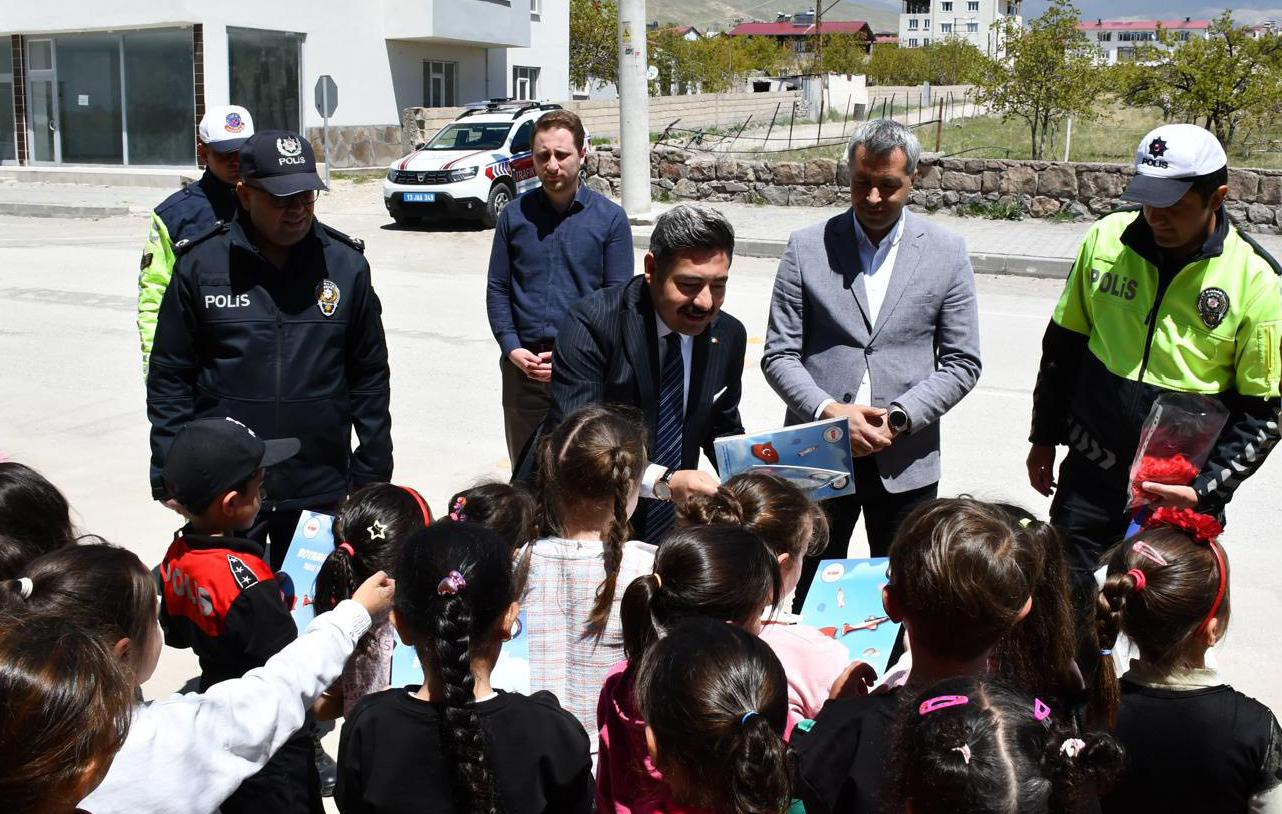 Adilcevaz ‘Şehit Mehmet Ali Erçetin İlkokulu’nda düzenlenen trafik etkinliğine Adilcevaz Kaymakamı Nurhalil Özçelik’te katıldı. İlçe Emniyet Müdürlüğü ve İlçe Jandarma Komutanlığı trafik ekipleri tarafından gerçekleştirilen programda, öğrencilere trafik kuralları hakkında bilgilendirme yapıldı. Öğrencilere trafik bilincini aşılamak ve genel trafik kurallarını öğretmek amacıyla Adilcevaz Kaymakamı Özçelik’te, öğrencilerle birlikte yaya geçidinden karşıya geçerek güvenli geçiş uygulamasına katıldı. Etkinliğin ardından öğrencilere düdük ve boyama kitabı hediye edildi.
