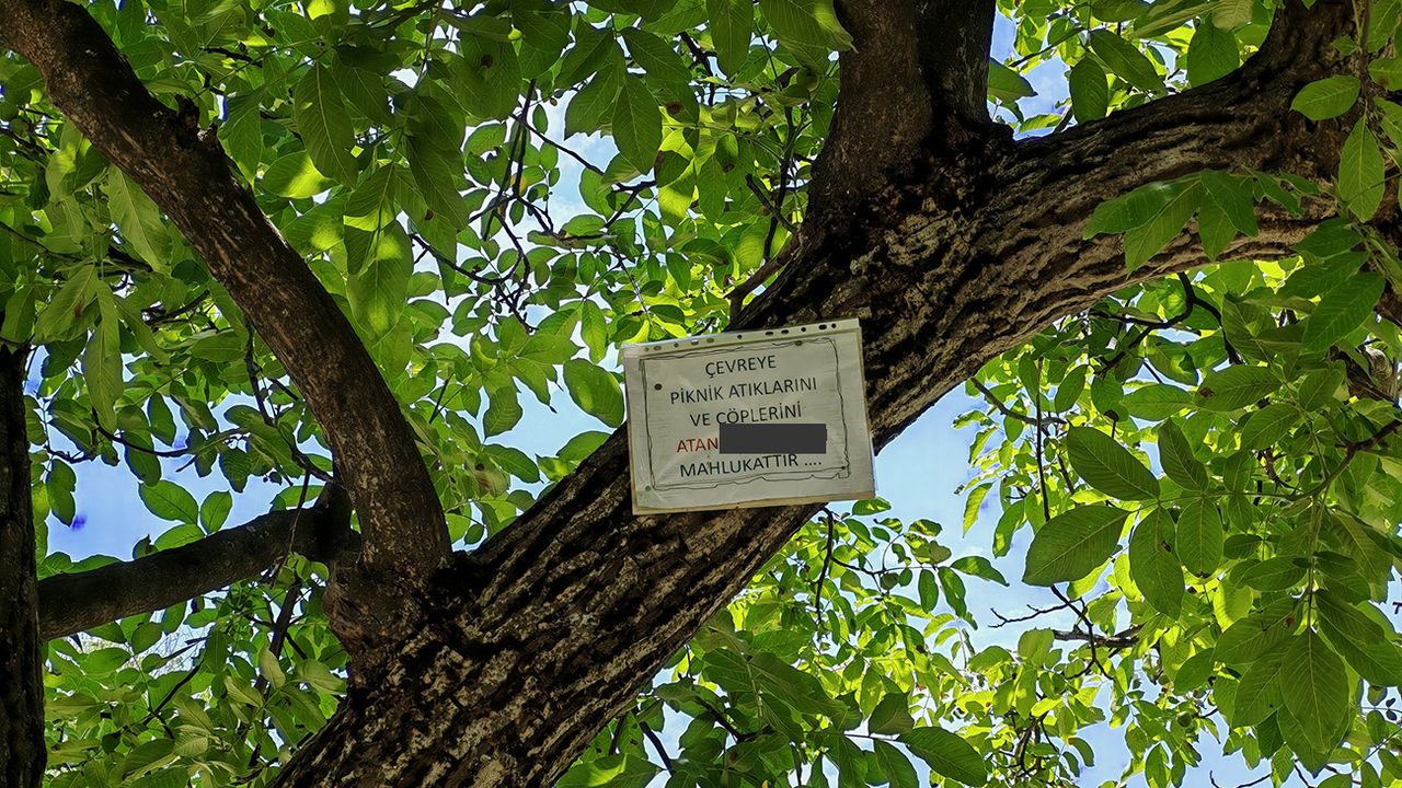 Van Gölü kıyısında doğal güzelliğiyle tanınan Ahlat’ta, özellikle yaz aylarında artan piknik faaliyetleri sonrası çevreye bırakılan atıklar, bölge halkını endişelendiriyor. Bu duruma tepki gösteren duyarlı vatandaş, ağacın yüksek dallarından birine astığı notla, çevreyi kirletenlere sert bir mesaj verdi.