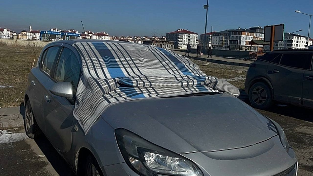 Yeniden soğuk havanın etkisi altına giren Ağrı'da, vatandaşlar araçlarını soğuktan korumak için battaniye ile örttü.