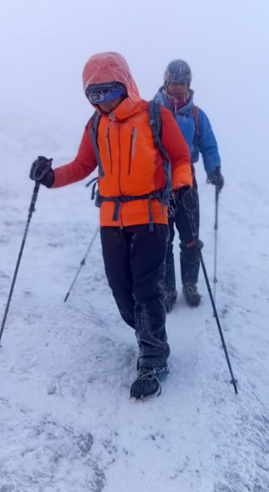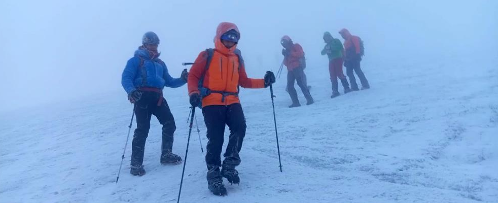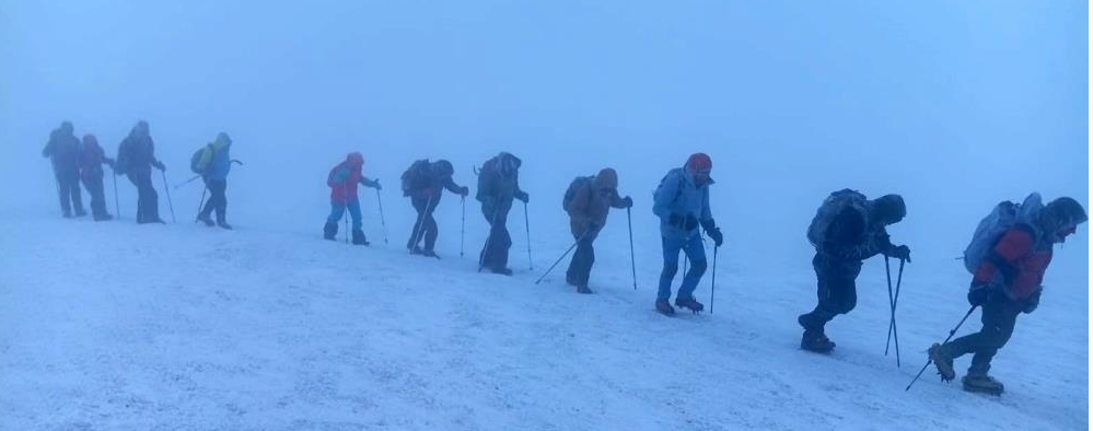 Tırmanışın ilk saatlerinde başlayan yağış kısa sürede fırtınaya dönüştü. Dağcılar, bastıran rüzgâr nedeniyle dengesini korumakta zorlanırken, görüş mesafesinin düşmesi de temkinli hareket etmelerini gerektirdi. Ancak alınan güvenlik önlemleri ve ekip dayanışması sayesinde yolculuk yarıda kalmadı.