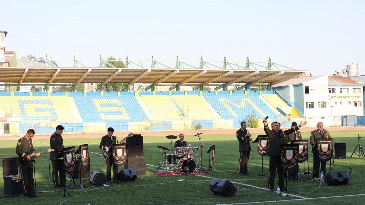 Ağrı Valiliğince Vali Lütfi Yiğenoğlu Stadyumu’nda gerçekleştirilen program, saygı duruşunda bulunulması ve İstiklal Marşı’nın okunmasıyla başladı. Konserde Astsubay Kıdemli Çavuş Osman Nuri Sümer, seslendirdiği türkü ve şarkılarla katılımcılardan alkış aldı. Vatandaşların eserleri hep birlikte söylediği programda renkli görüntüler oluştu.