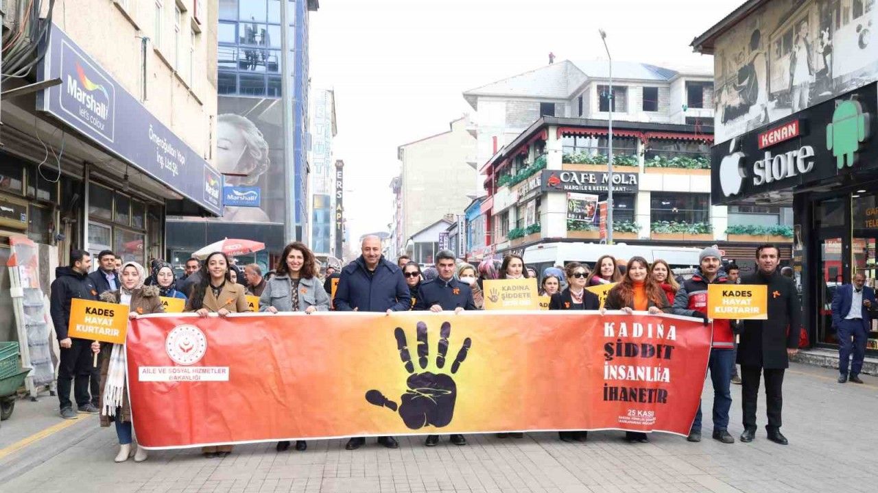 Ağrı’da kadına yönelik şiddete dikkat çekmek ve toplumsal farkındalığı artırmak amacıyla yürüyüş gerçekleştirildi.