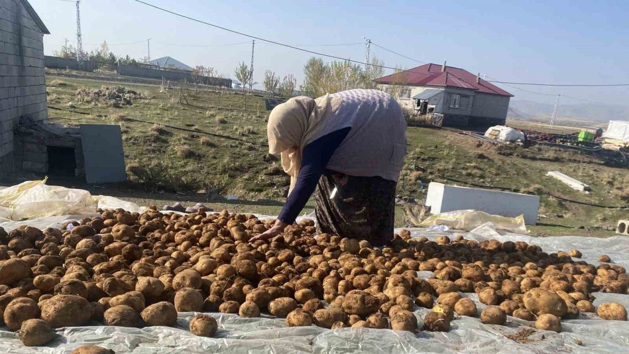 Ev hanımı Gülseren Yaka, tarlalardan getirilen patateslerin önce ev bahçesinde serilerek çürük ve nemli olanların ayrıldığını belirtti. Ayıklama işleminin ardından sağlam patateslerin bir süre güneşte kurutulduğunu ifade eden Yaka, asıl koruma sürecinin toprağa gömme aşamasıyla başladığını söyledi.