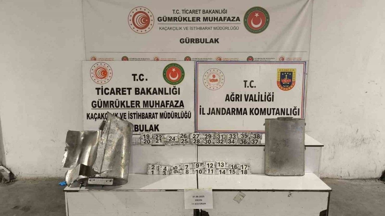 Gürbulak Gümrük Sahası’nda gerçekleştirilen operasyonda, tırın yakıt deposuna gizlenen 11 kilo 633 gram eroin jandarma ve gümrük ekiplerince ele geçirildi.