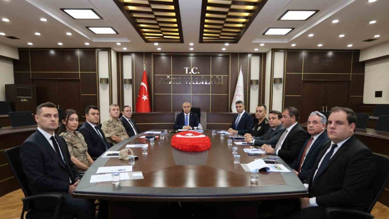 Ağrı Valiliği toplantı salonunda düzenlenen toplantıda, üniversite öğrencilerinin güvenli ve huzurlu bir ortamda eğitimlerine devam edebilmeleri için alınacak tedbirler ele alındı. Öğrencilerin barınma, ulaşım ve sosyal alanlarda güvenliğinin sağlanmasına yönelik çalışmalar değerlendirildi.