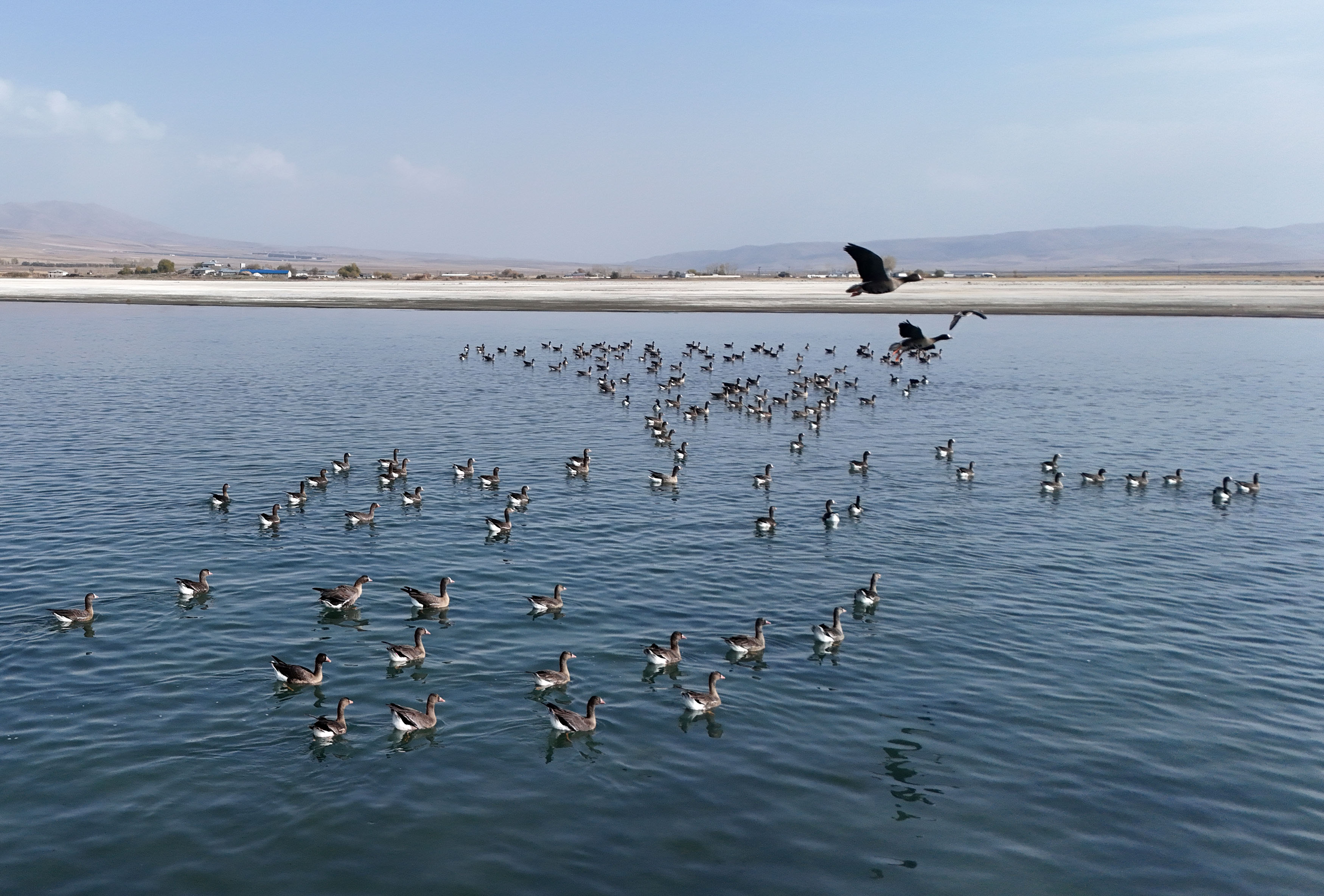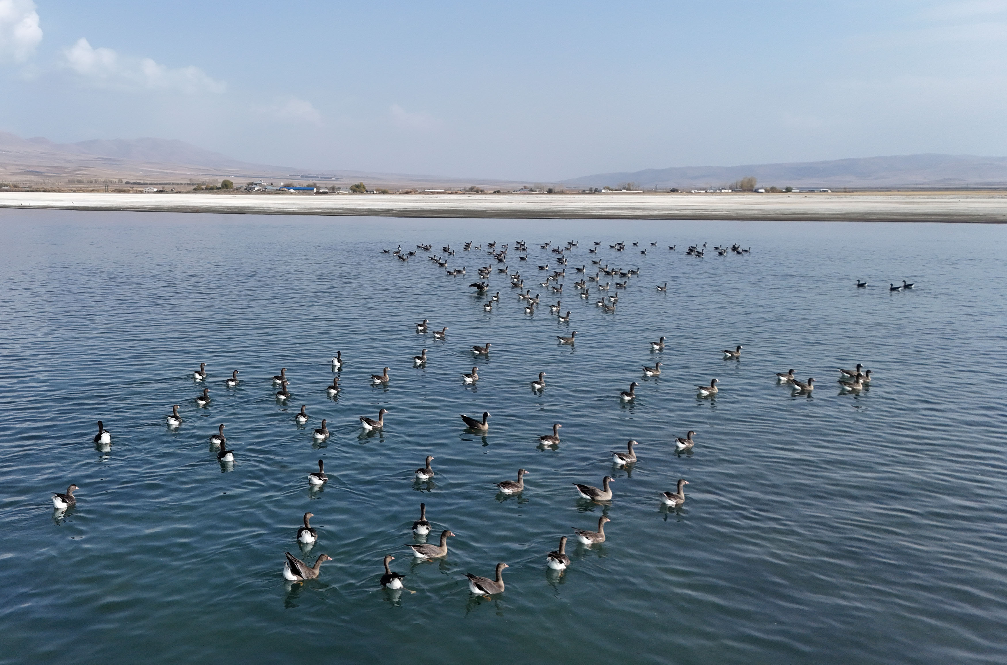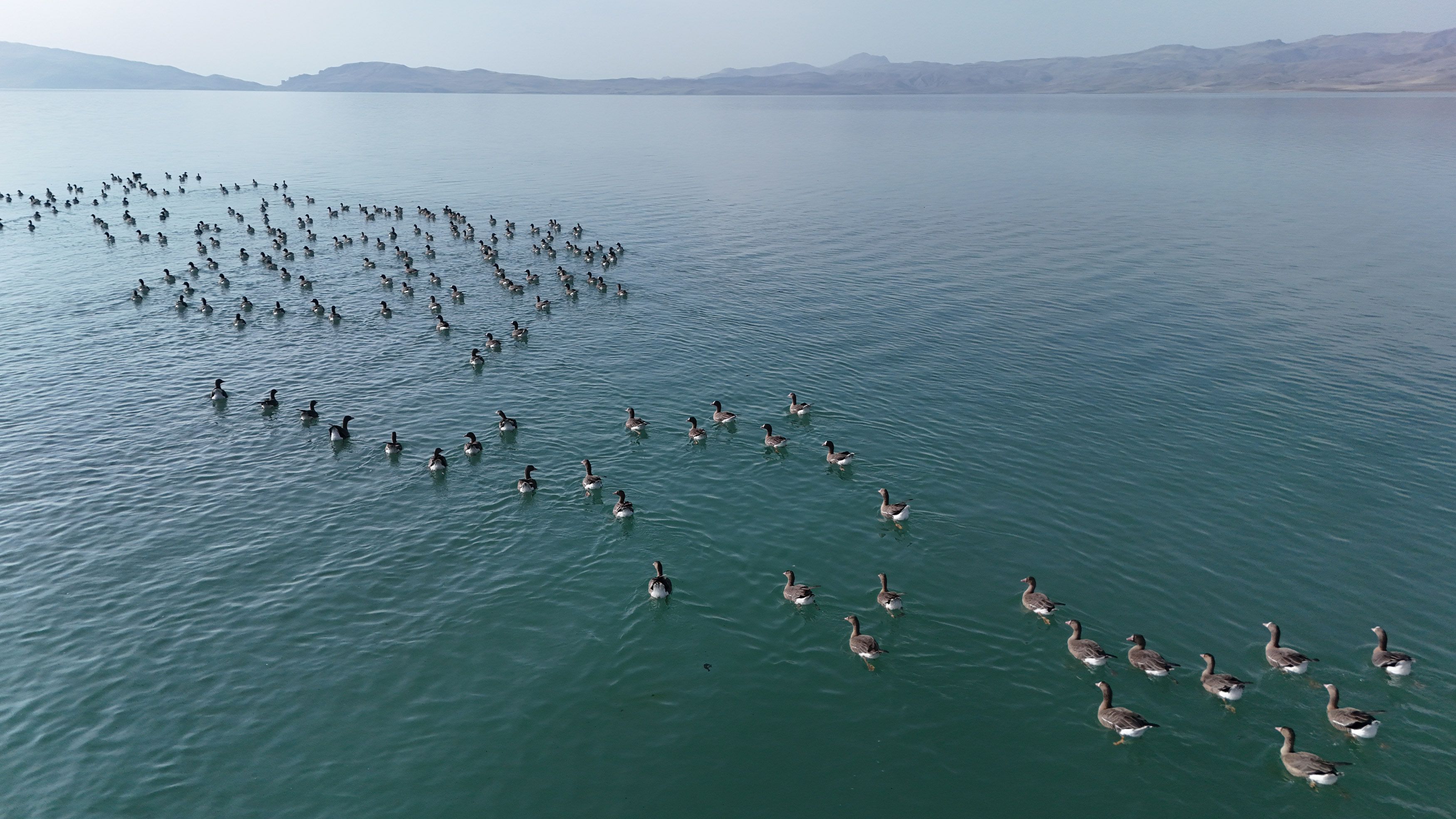 Ahlat Fotoğrafçılar Derneği (AHFOD) Başkanı Özkan Olcay, Türkiye'nin önemli sulak alanlarından ve kuş cennetlerinden biri olan Erçek Gölü’nün yeni misafirleri küçük sakarcaları havadan dronla görüntülendi.