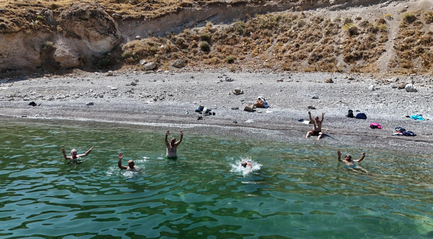 Her hafta düzenli olarak doğa yürüyüşleri ve keşif gezileri yapan dernek üyeleri, bu kez Ahlat dışına çıkarak Gevaş’ın doğal ve tarihi güzelliklerini yakından görme fırsatı buldu. İnköy ve Altınsaç kıyılarında yürüyüş yapan 20 kişiden oluşan ekip, Van Gölü’nün eşsiz manzarası eşliğinde Van Gölü’nde yüzerek keyifli bir gün geçirdi.