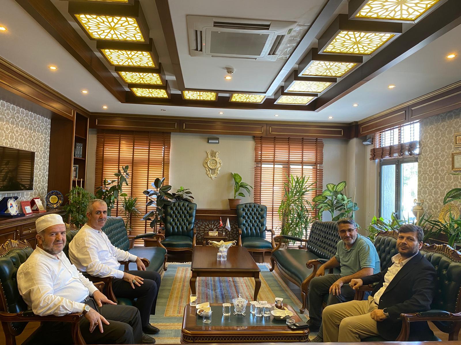 Ahlat Eski Müftüsü ve Abdurrahman Gazi Kur'an Kursu Müderrisi Fudeyil Uyanık, Ahlat Şehit Eren Öztürk Külliyesi Yöneticisi ve Dernek Başkanı Şerafettin Tanyeri ile Yeni Ahlat Gazetesi Yazı İşleri Müdürü Özkan Olcay, Bingöl İl Müftüsü Orhan İmamoğlu'na hayırlı olsun ziyaretinde bulundular. Misafirlerini makamında ağırlayan Müftü İmamoğlu ziyaretten duyduğu memnuniyeti dile getirdi. İmamoğlu, Ahlat Müftülüğü sırasında birçok güzel dostluklar kurduğunu belirterek Ahlat’ın kendisinde yerinin çok farklı olduğunu ifade etti. Ahlat heyeti de misafirperverliği ve ağırlamasından dolayı Bingöl İl Müftüsü Orhan İmamoğlu’na teşekkür ettiler.