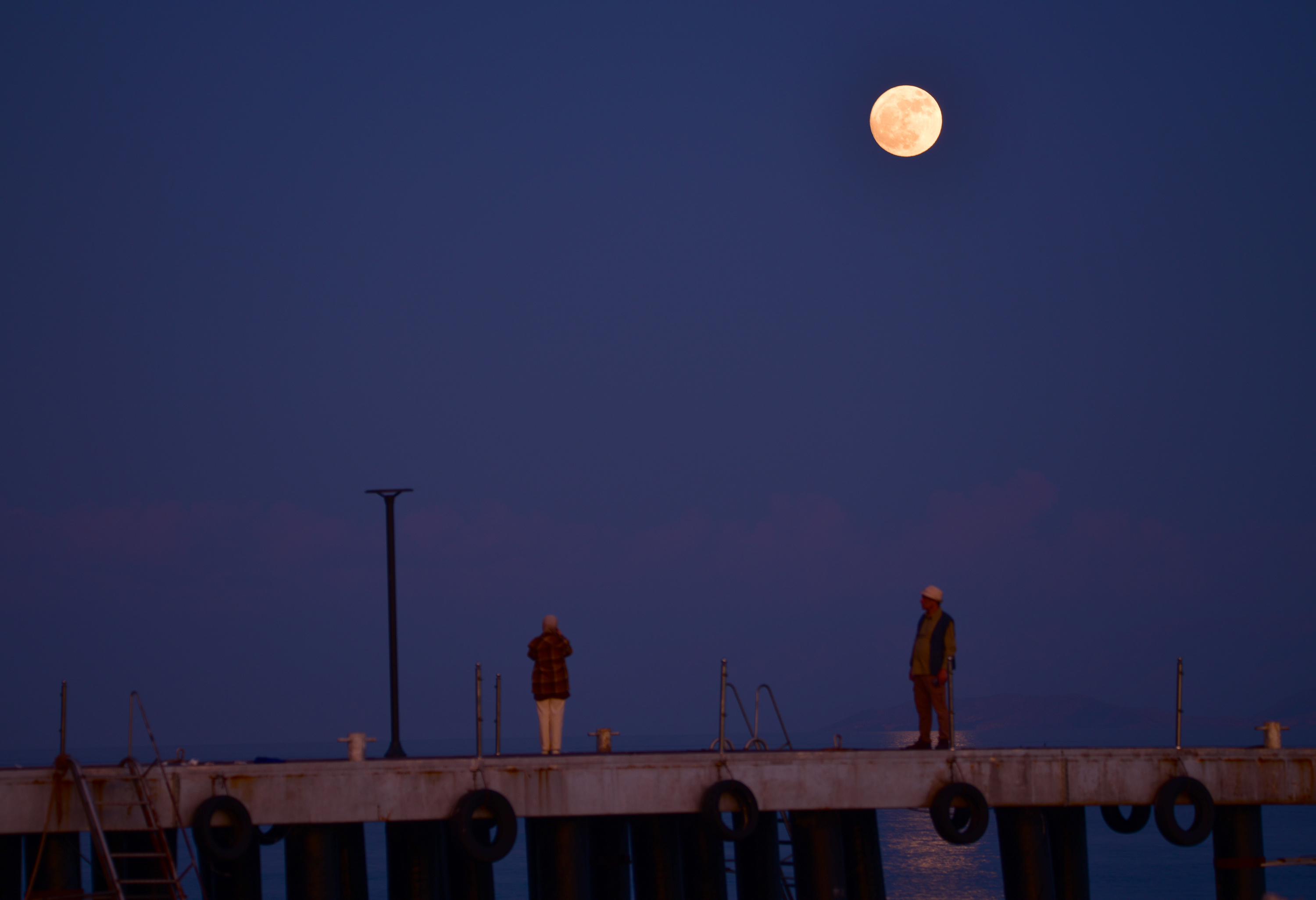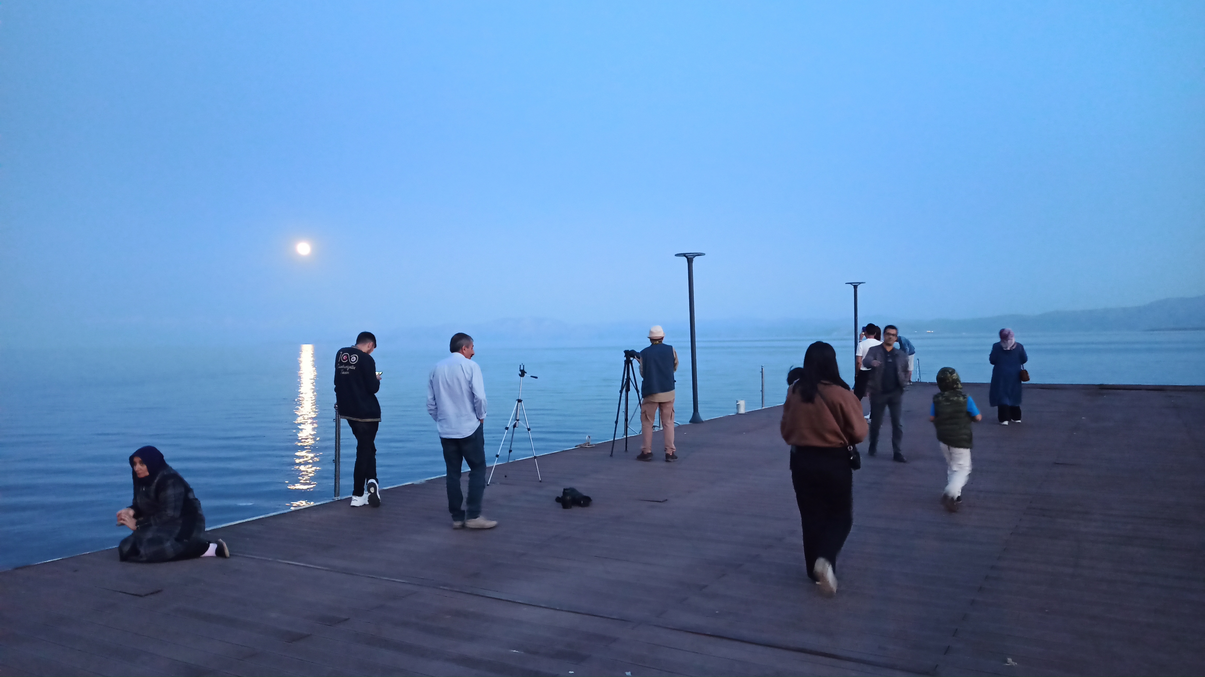 Dolunay’ın seyri doyumsuz manzarası, ilçedeki vatandaşların ilgisini çekti. Dolunayın gökyüzünde tüm ihtişamıyla yükselmesiyle birlikte, Ahlat’ta Van Gölü sahiline akın eden vatandaşlar eşsiz görüntülere tanıklık etti. Bazı vatandaşlar ise Ahlat iskelesine inerek ayın su üzerindeki yansımasını yakından izledi ve manzaranın fon oluşturduğu karelerde hatıra fotoğrafları çektirdi.