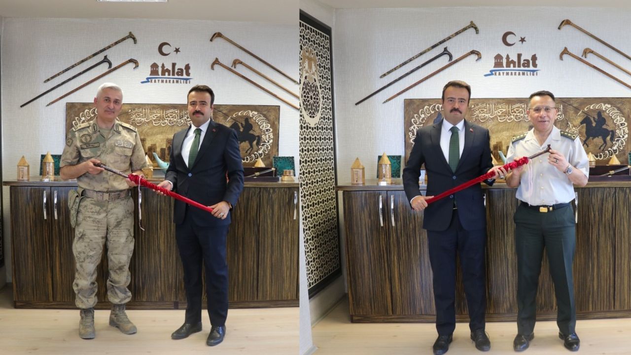 Kaymakam Bingöl’ü ilk olarak İl Jandarma Komutanı Tuğgeneral Barış Soyal ziyaret etti. Ziyarette karşılıklı sohbetin ardından Kaymakam Bingöl, Tuğgeneral Soyal’a Ahlat’ın simgesi olan baston hediye etti.