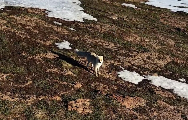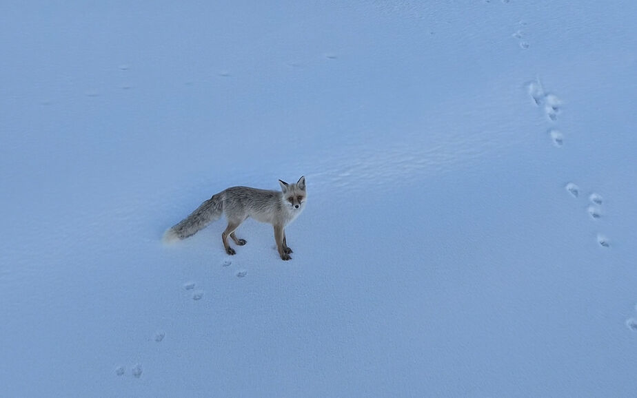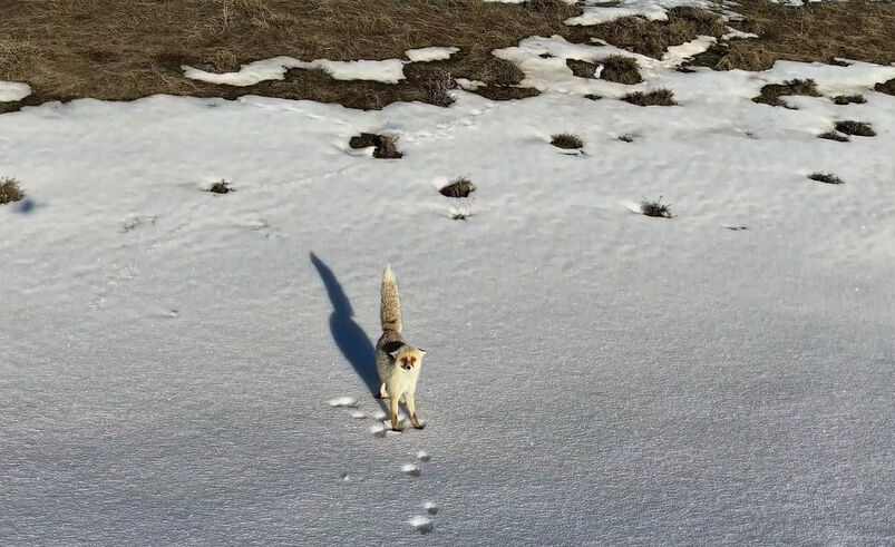 Ahlat ilçesine bağlı Ovakışla Beldesi ile Dilburnu Köyü yolunda dronla görüntü alan içerik üreticisi Ercan Baş tarafından, karlı arazide yiyecek arayan bir tilki fark edildi. Kar örtüsü üzerinde dikkatli adımlarla ilerleyen tilki, bir süre yiyecek aradı. Havada uçan dronun kendisini takip ettiğini fark eden tilki ise bir an duraksayarak tedirgin ve meraklı bakışlarla dronu izledi. Bir süre çevresini kontrol eden tilki, daha sonra hızla bölgeden uzaklaştı.