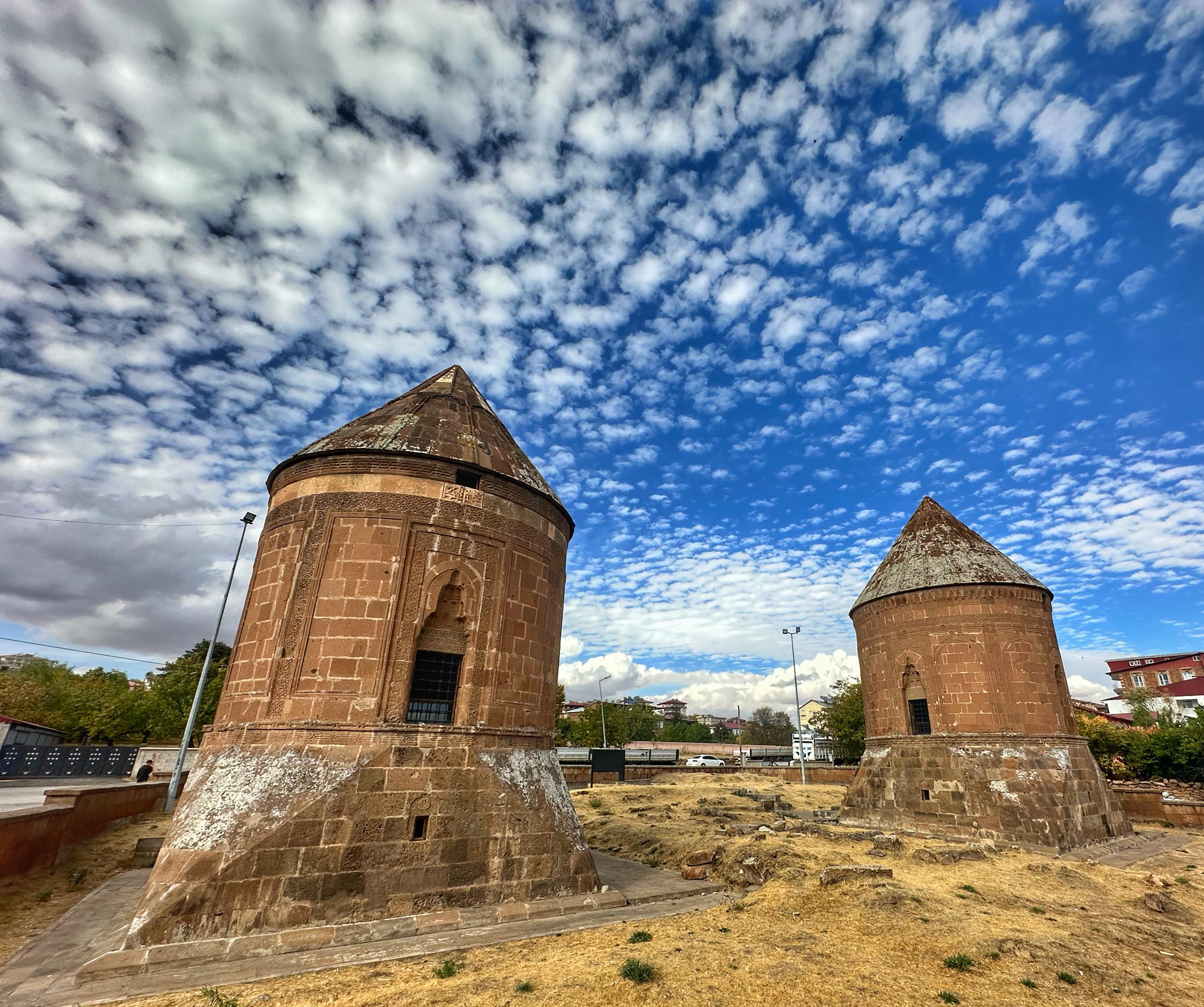 Son günlerde etkili olan bulut geçişleri, “tarihin taşlara işlendiği şehir” olarak bilinen Ahlat’ta görsel bir şölene dönüştü. Gökyüzünü kaplayan gri ve beyaz tonlardaki bulutlar, ilçenin simgeleri arasında yer alan tarihi kümbetlerle birlikte eşsiz bir manzara oluşturdu.