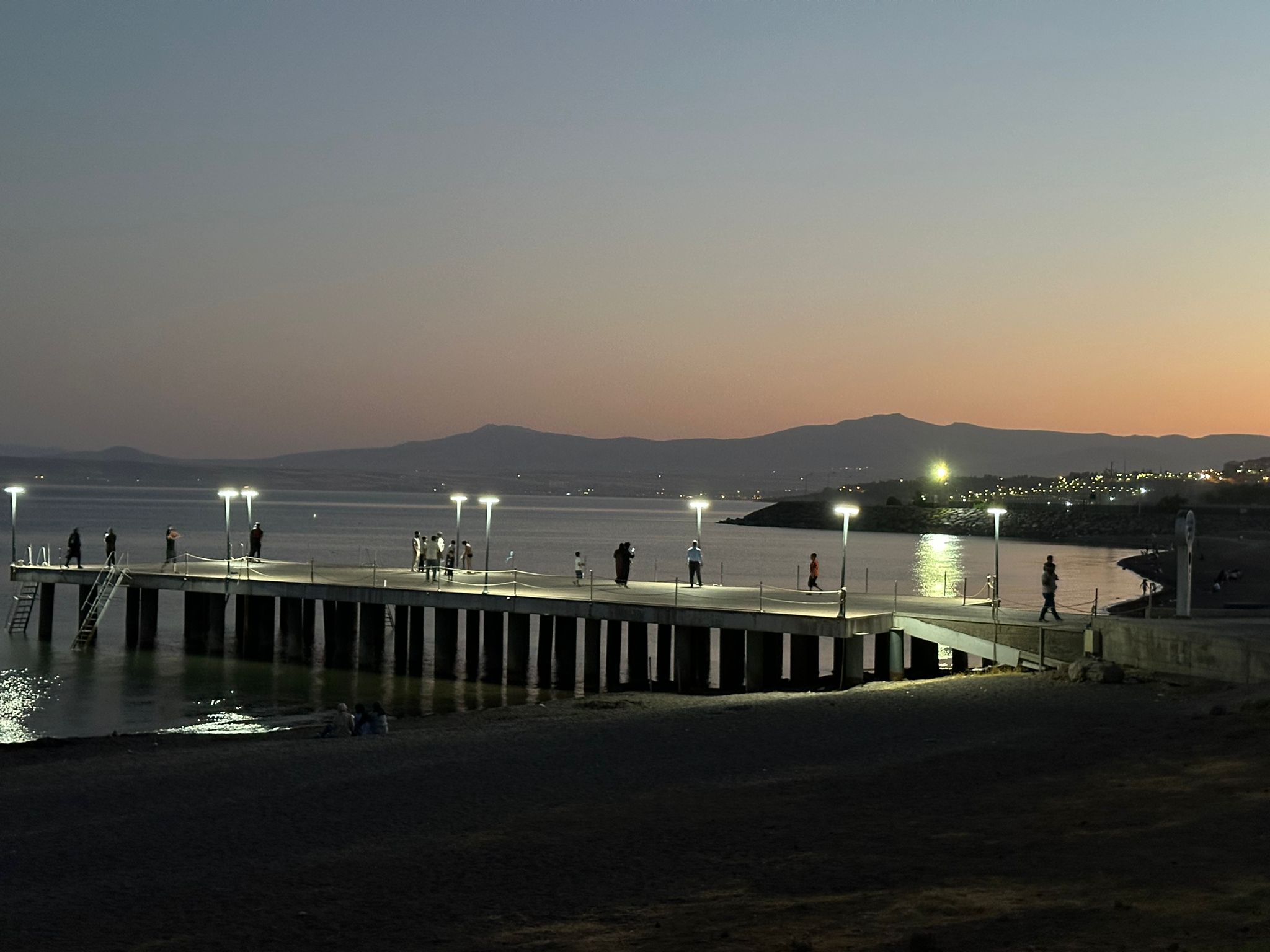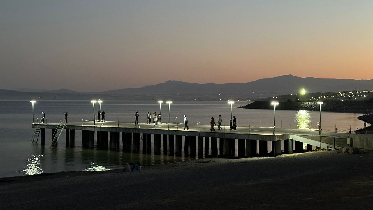 Gündüz saatlerinde olduğu gibi geceleri de serin havanın tadını çıkarmak isteyen vatandaşlar, sahil iskelelerine akın ediyor. Van Gölü’ne kıyısı bulunan Ahlat, doğal güzellikleri ve sahil düzenlemeleriyle yaz mevsiminde hem ilçe halkının hem de ziyaretçilerin uğrak noktası haline geldi. Özellikle akşam saatlerinde serinleyen hava ile birlikte sahil iskelelerinde yürüyüş yapan vatandaşlar, bir yandan göl manzarasının keyfini çıkarırken diğer yandan Ahlat’ın şehir siluetini seyrediyor.