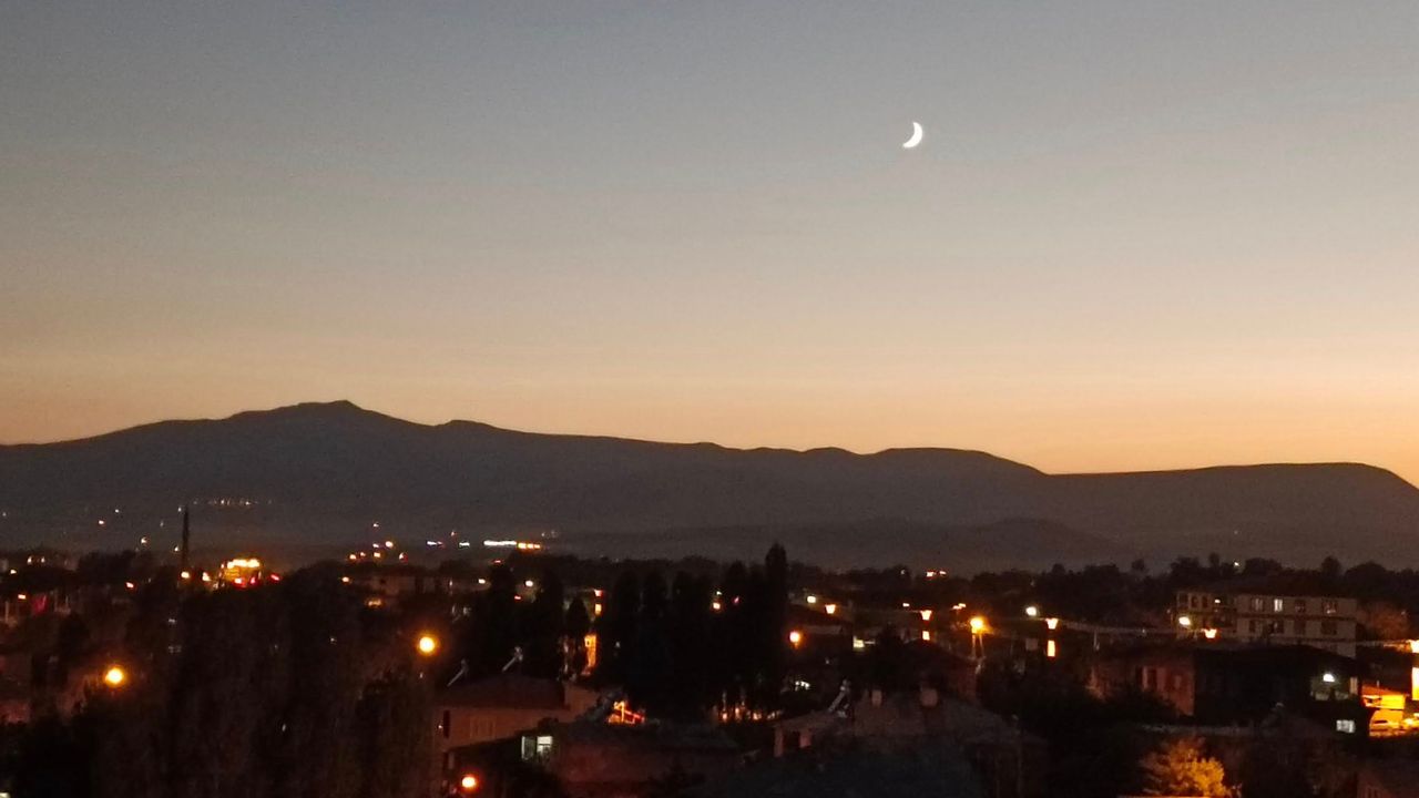 Ahlat semalarında beliren hilal, şehir ışıklarıyla birleşince ortaya kartpostallık görüntüler çıktı. Göz alıcı manzara, özellikle fotoğraf tutkunlarının ilgisini çekerken, sosyal medyada paylaşılan kareler büyük beğeni topladı. Sessiz gecenin huzuruyla bütünleşen hilal, Ahlat’ın doğal güzelliklerine bir yenisini daha ekledi.
