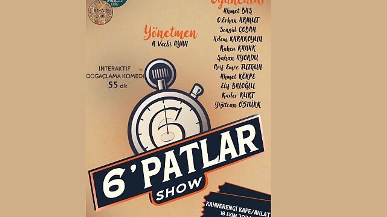 Bitlis’in Ahlat ilçesinde, “6’ Patlar Show” tiyatro oyunu izleyiciyle buluşacak. Bitlis Kültür ve Sanat Derneği (BİSAD) bünyesinde, yönetmenliğini Vecbi Ayan’ın üstlendiği interaktif doğaçlama komedi oyunu, 18 Ekim Cuma günü Ahlat’taki Kahverengi Cafe’de sahne alacak.