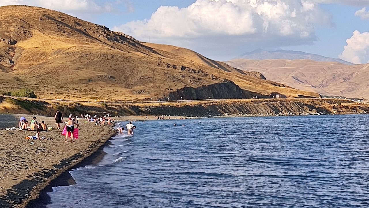 Yazın kavurucu sıcakları Van Gölü’nün serinliğinde anlam buluyor. Ahlat ve Adilcevaz sahilleri, hafta sonu tatilcileriyle dolup taşıyor. Kimileri göl kıyısında yürüyüşe çıkıyor, kimileri doğal kumsalar da göle giriyor; çocuklar suyun neşesiyle oynarken, yaşlılar ise kumsallarda gezerek Van Gölünün serinliğe sığınıyor.