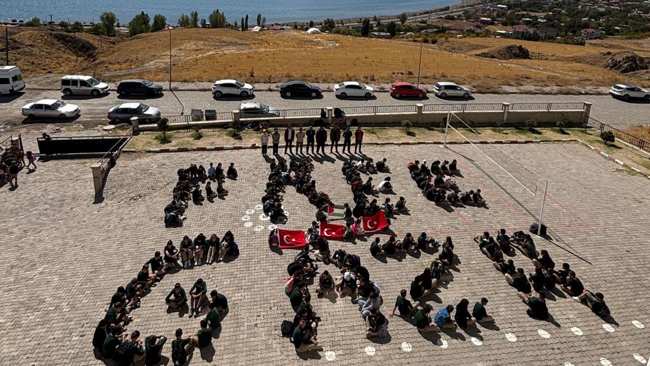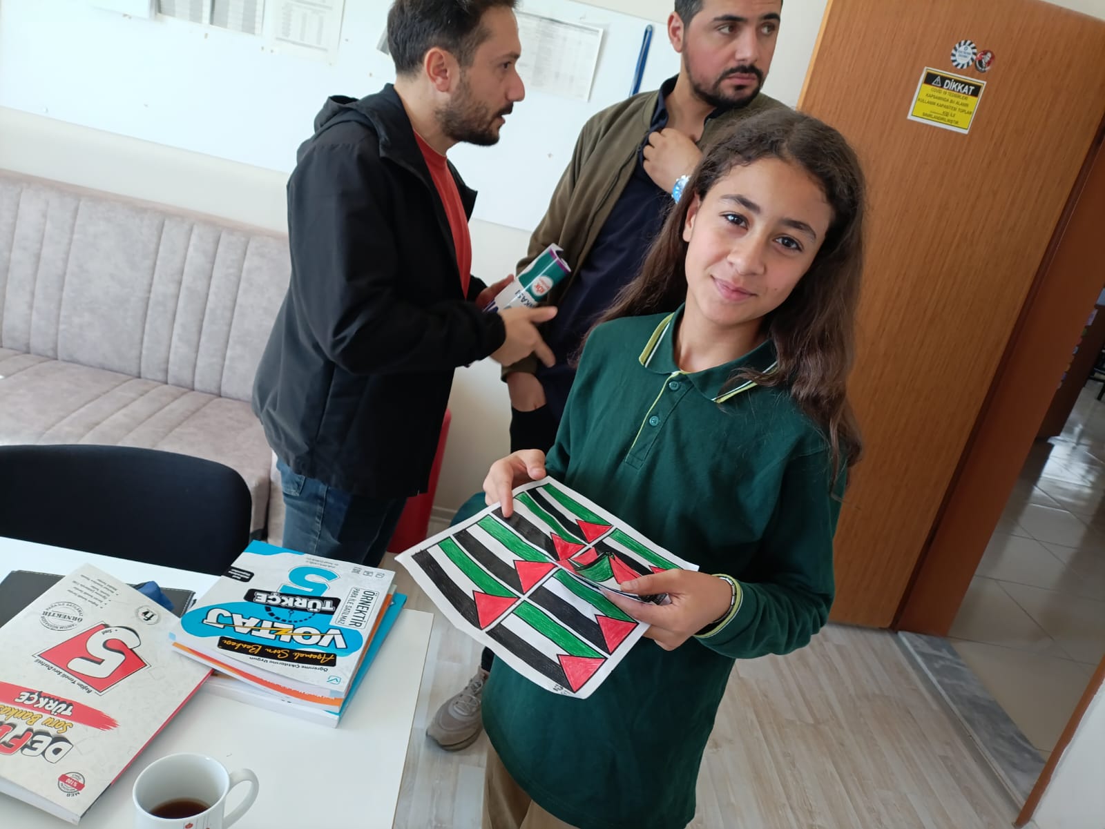 Okul idaresi ve öğretmenlerinin desteğiyle düzenlenen etkinlikte öğrenciler, okul bahçesinde bir araya gelerek “Free Gaza” yazısı oluşturdu ve zulme uğrayan Filistinli kardeşlerine destek mesajı verdi. Etkinlikte öğrenciler, öğretmenlerinin rehberliğinde barış, kardeşlik ve insanlık adına güçlü bir farkındalık oluşturdu. Ellerinde Filistin bayrakları taşıyan öğrenciler, dünyanın dört bir yanında yaşanan zulümlere karşı sessiz kalmama çağrısı yaptı.