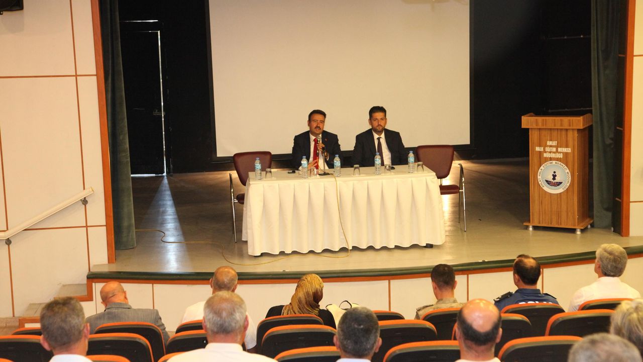 Ahlat Halk Eğitimi Merkezi konferans salonunda düzenlenen toplantıya, Ahlat Kaymakamı Batuhan Bingöl ve Ahlat Belediye Başkanı Yavuz Gülmez katıldı. Toplantıda, ilçede yapılacak etkinliklerle ilgili muhtarlara detaylı bilgiler verildi.