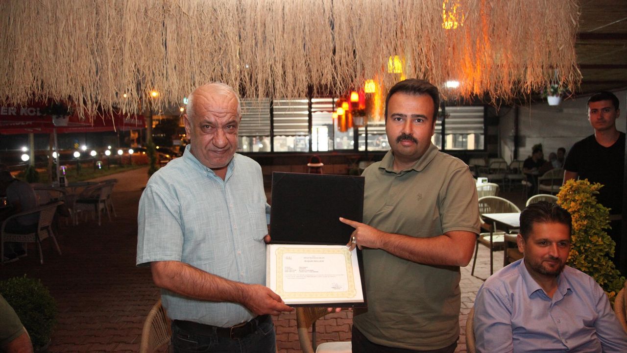 Konuşmaların ardından Kaymakam Bingöl tarafından Müdür Keskin’e başarı belgesi verildi.