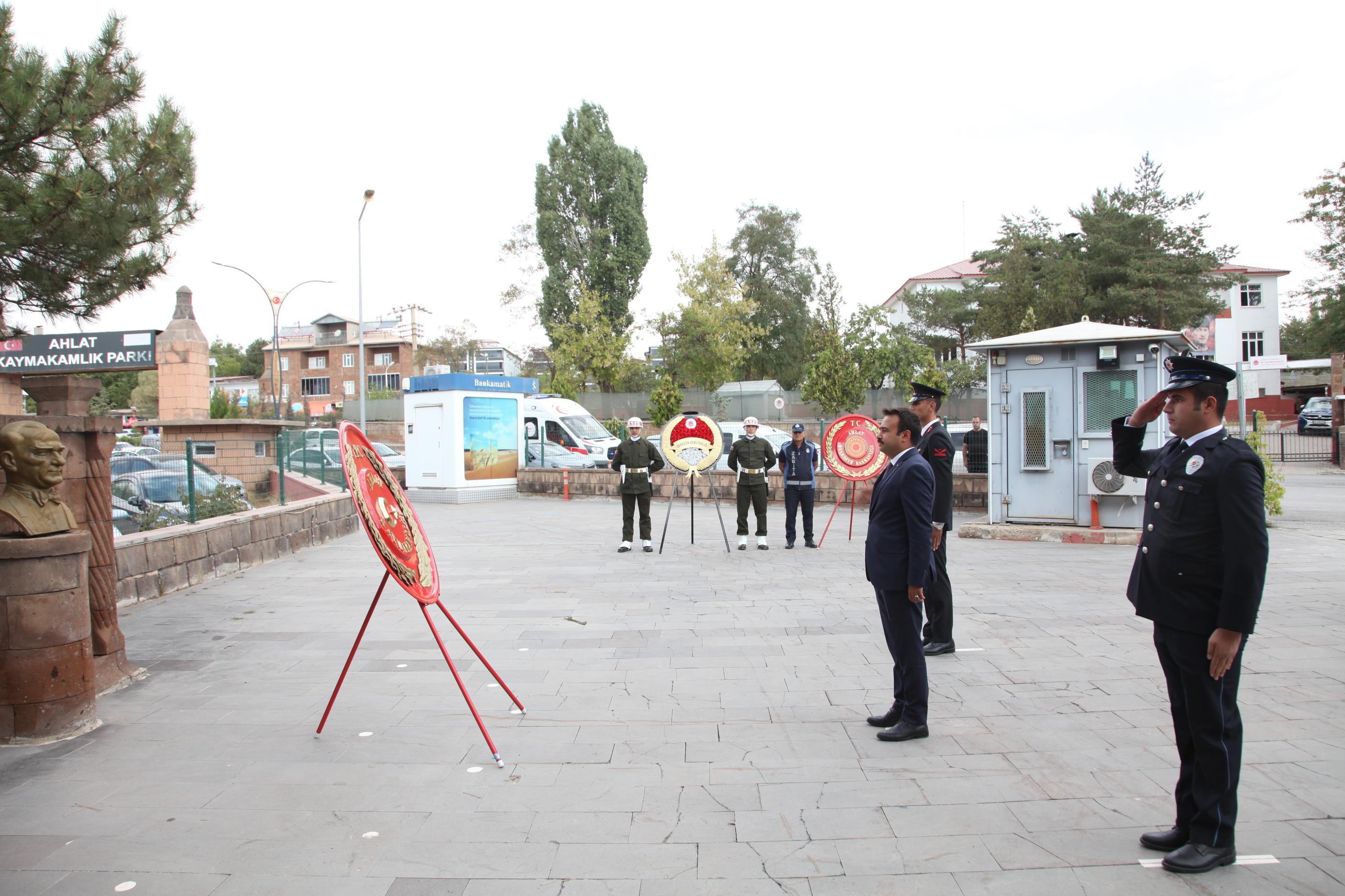 Ahlat Kaymakamlığı önünde çelenklerin sunulmasıyla başlayan program, Saygı Duruşu ve İstiklal Marşının okunmasıyla devam etti.