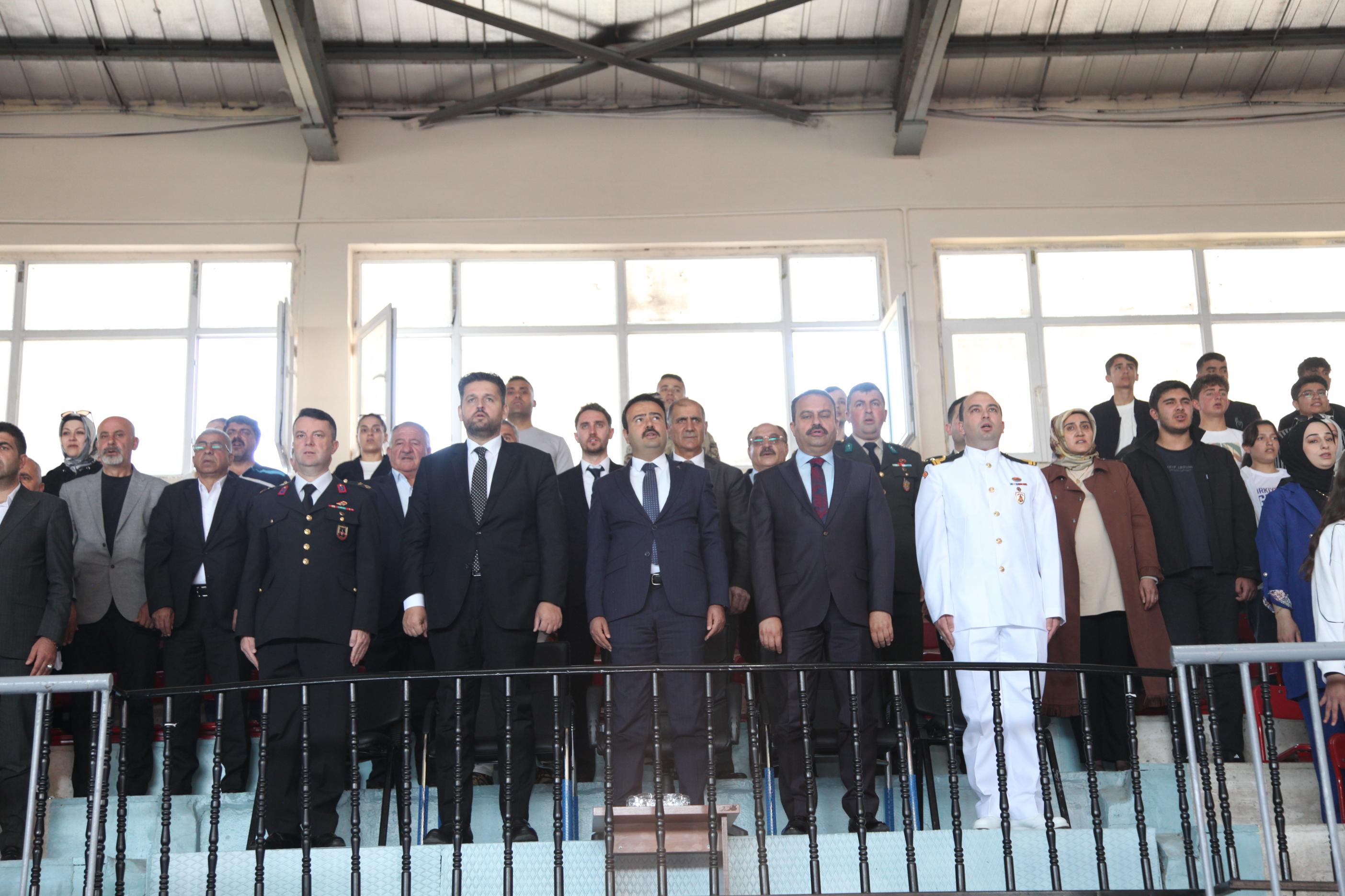 Buradaki program saygı duruşu ve İstiklal Marşı’nın okunmasıyla başladı.
