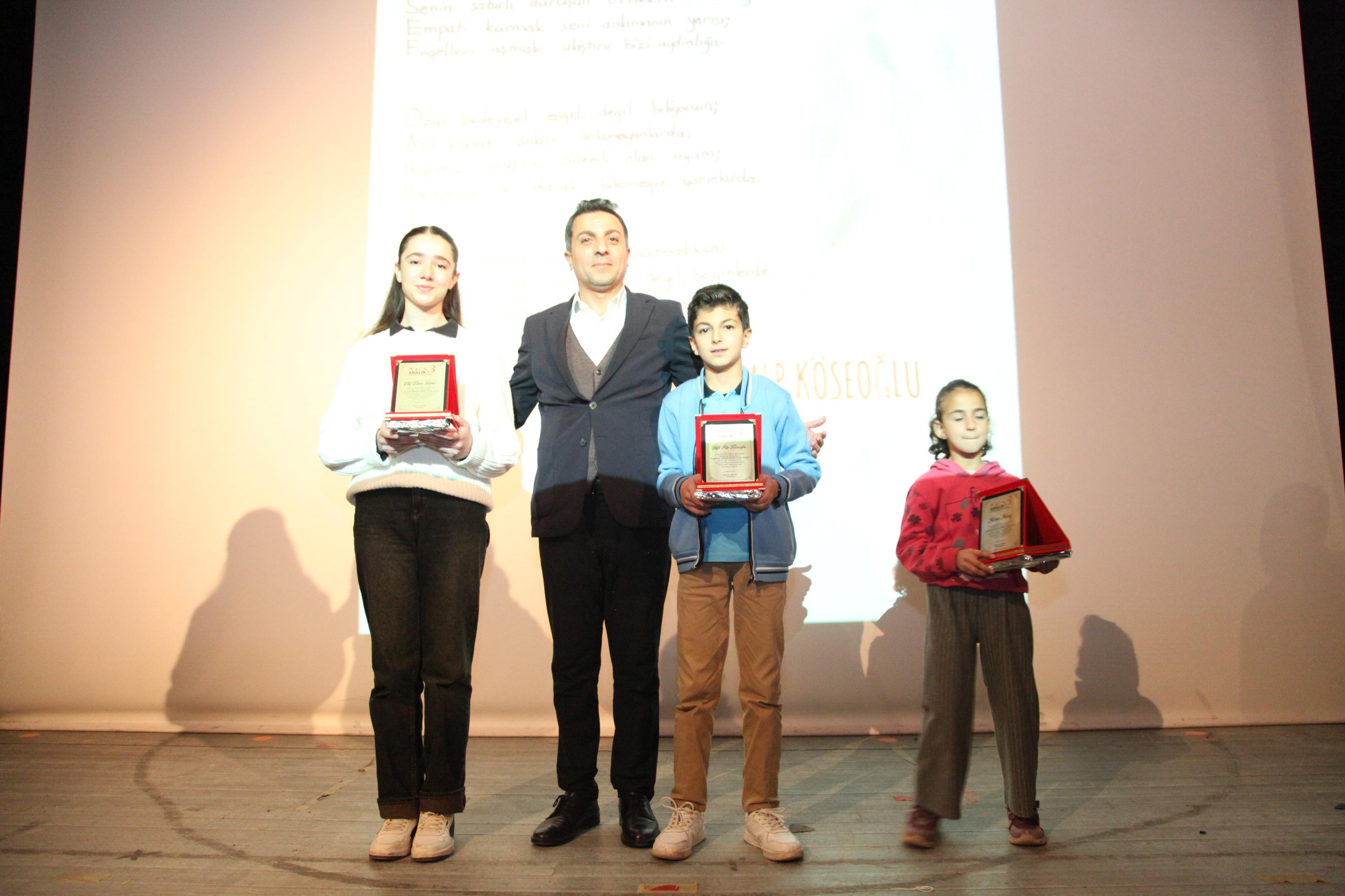 Etkinliğin sonunda, 3 Aralık Dünya Engelliler Günü kapsamında düzenlenen yarışmalarda dereceye giren öğrencilere ödülleri takdim edildi.