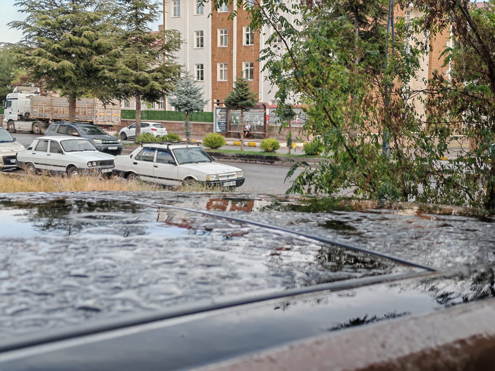 Yaz mevsiminin sıcak günlerinde yağan yağmur, hem serinlik getirdi hem de ilçe sakinlerinde kısa süreli şaşkınlık yarattı.