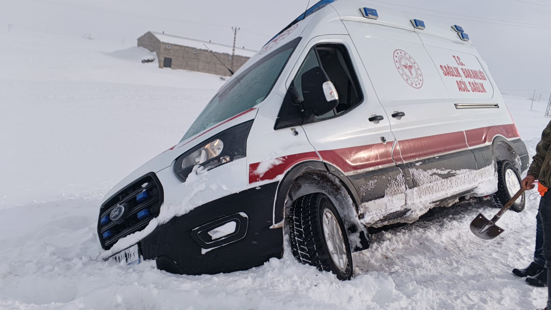 Bitlis’in Ahlat ilçesinde etkili olan yoğun kar yağışı ve tipi, sağlık ekiplerine zor anlar yaşattı. İlçeye bağlı Güzelsu Köyü’nden hasta almak için yola çıkan ambulans, dönüş yolunda olumsuz hava koşulları nedeniyle savrularak bulunduğu yerden çıkamadı. Karla kaplanan yolda ilerleyemeyen ambulans, kısa sürede mahsur kaldı.