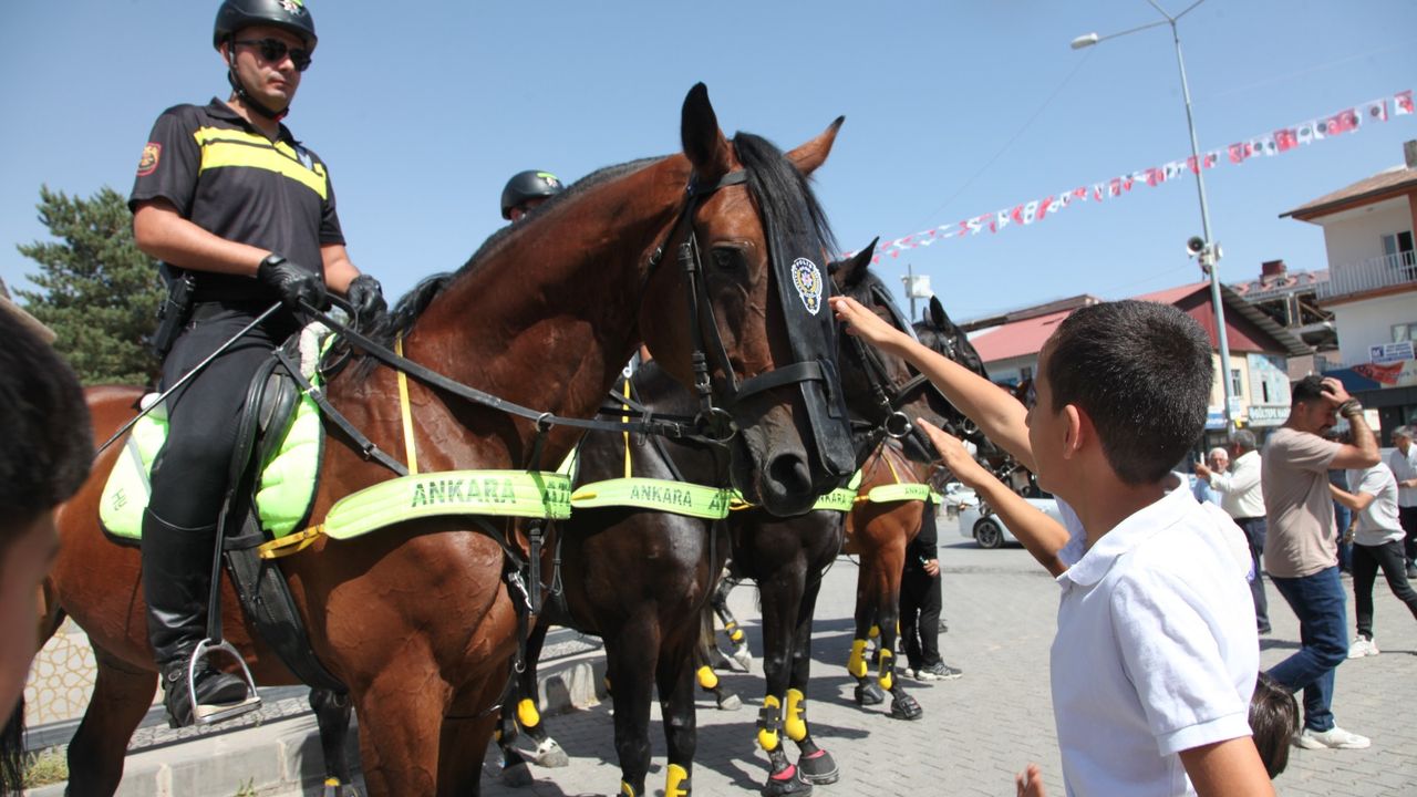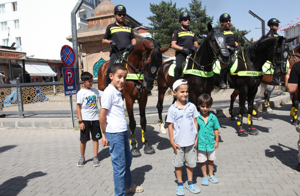 Bitlis’in Ahlat ilçesinde, Malazgirt Zaferi’nin 954. yıl dönümü etkinlikleri kapsamında Ankara’dan gelen atlı polis ekipleri devriye görevi yaptı. Ankara Emniyet Müdürlüğü Çevik Kuvvet Şube Müdürlüğü Atlı Polis Birliği, ilçe merkezi ve tarihi kümbetlerin çevresinde görev yaparken, gittikleri her yerde çocukların büyük ilgisini çekti.