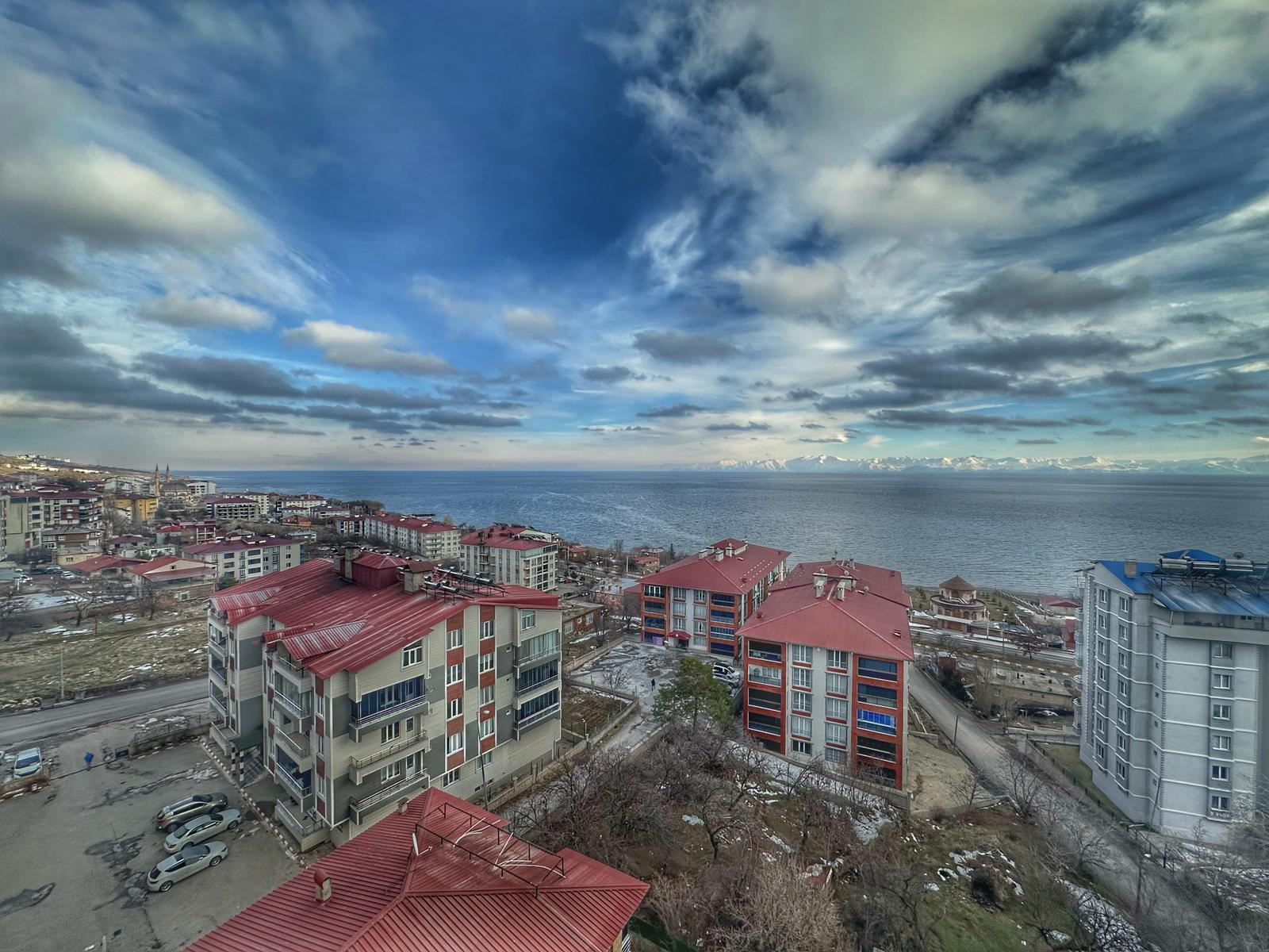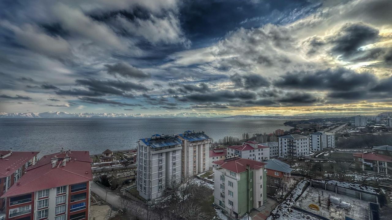 Zaman zaman gökyüzünde hızla değişen bulut katmanları, Van Gölü kıyısındaki ilçe siluetiyle birleşerek izleyenleri kendine hayran bıraktı. Ahlat’ta bulunan doğa fotoğrafçısı Bülent Akarsu, ilçe sahil şeridinden çektiği fotoğraf kareleriyle bulut geçişlerinin oluşturduğu görsel zenginliği objektifine yansıttı.