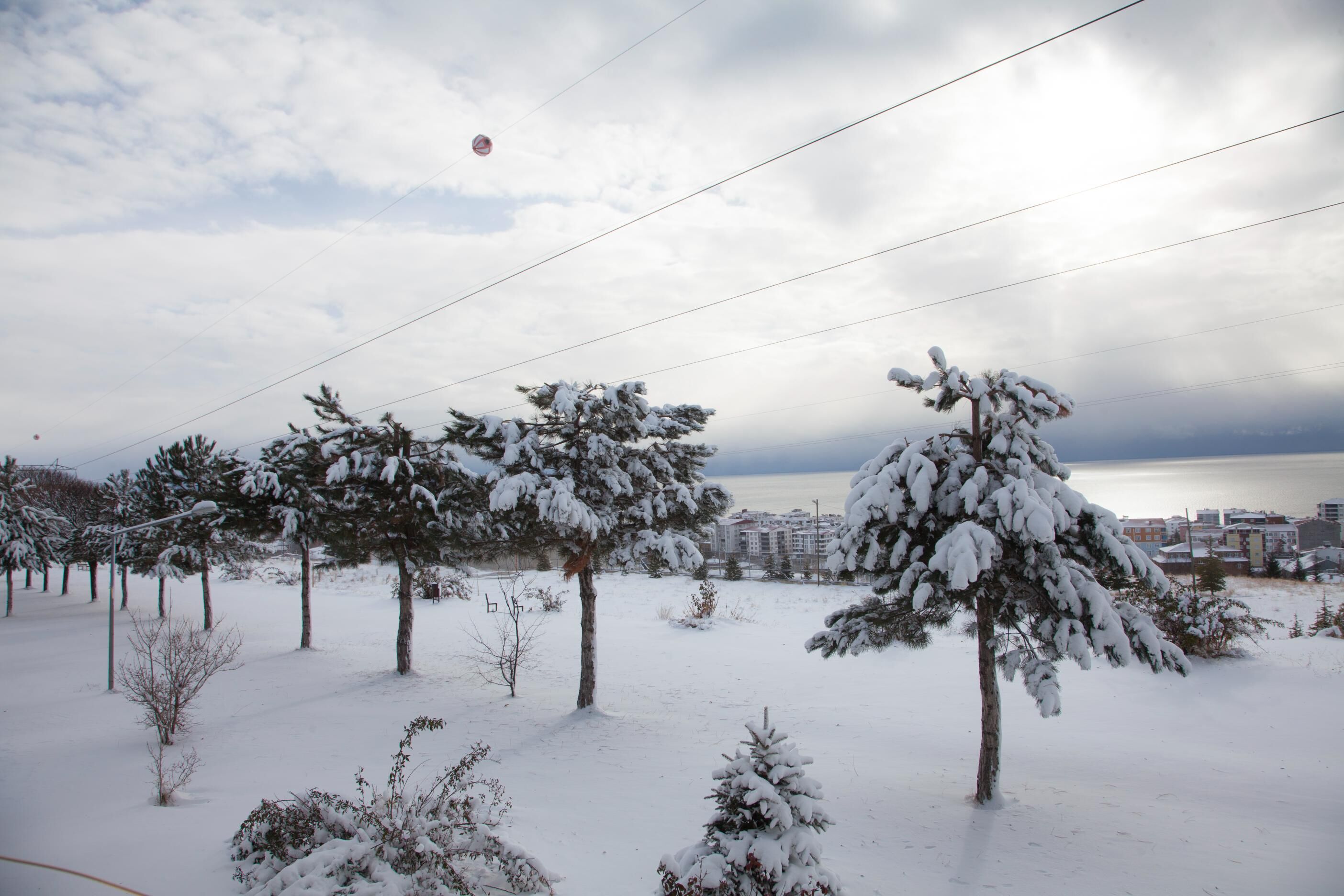 İlçede etkili olan kar yağışı, doğayı beyaz bir örtüyle kapladı. İlçede özellikle TOKİ konutları çevresinde bulunan çam ağaçları, karla birlikte kartpostallık manzaralar sundu. Dallarına tutunan karlar, çam ağaçlarıyla bütünleşerek ortaya hoş görüntüler çıkardı.