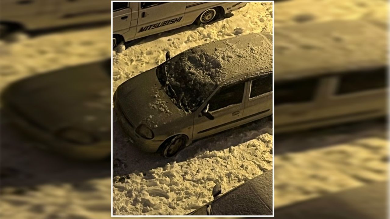 Edinilen bilgilere göre, apartman önüne park edilen bir aracın üzerine, çatıda biriken kar ve buz parçaları düştü. Düşme sonucu araçta maddi hasar oluşurken, olayda herhangi bir yaralanma yaşanmadı.