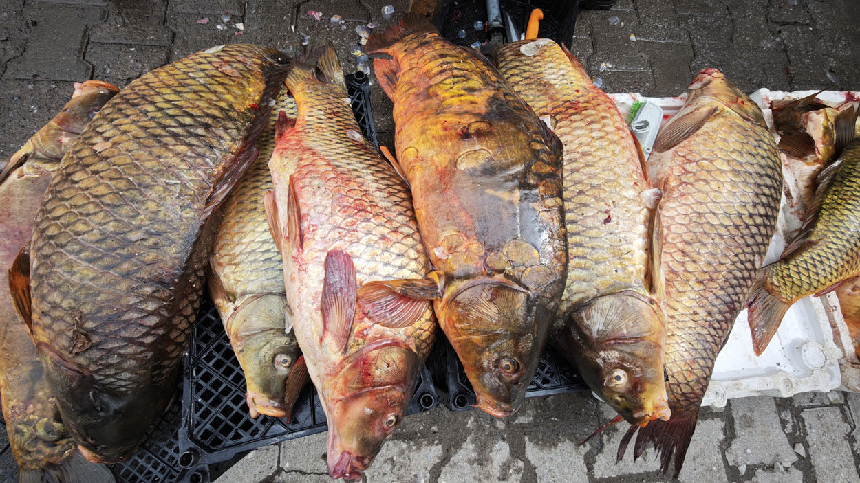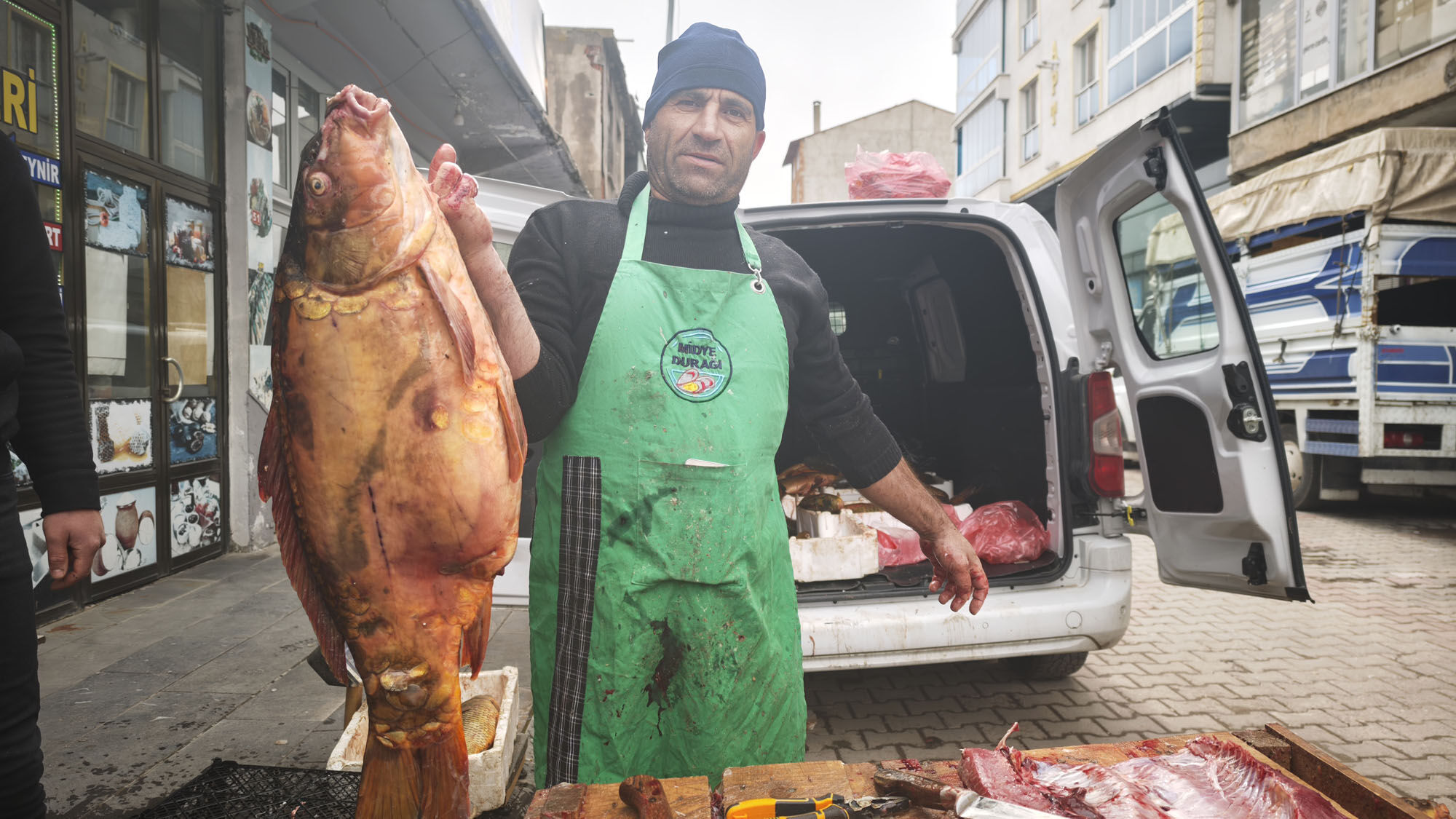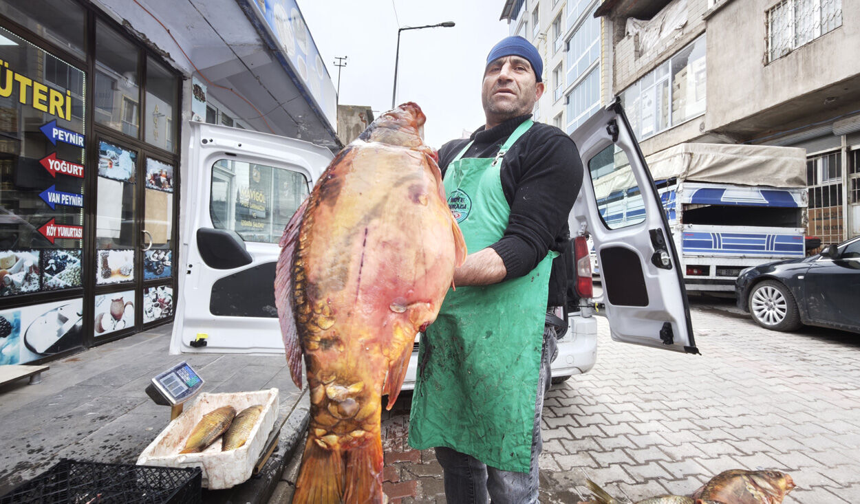 Ahlat’ta balıkçılık yapan Aydın Yıldız tarafından ilçeye getirilen ve ağırlıkları 15 ile 30 kilogram arasında değişen dev sazan balıkları, tezgâhlarda görenlerin dikkatini çekiyor. Büyük boyutlarıyla ilgi odağı olan balıklar, özellikle kalabalık aileler ve toplu tüketim için tercih ediliyor.