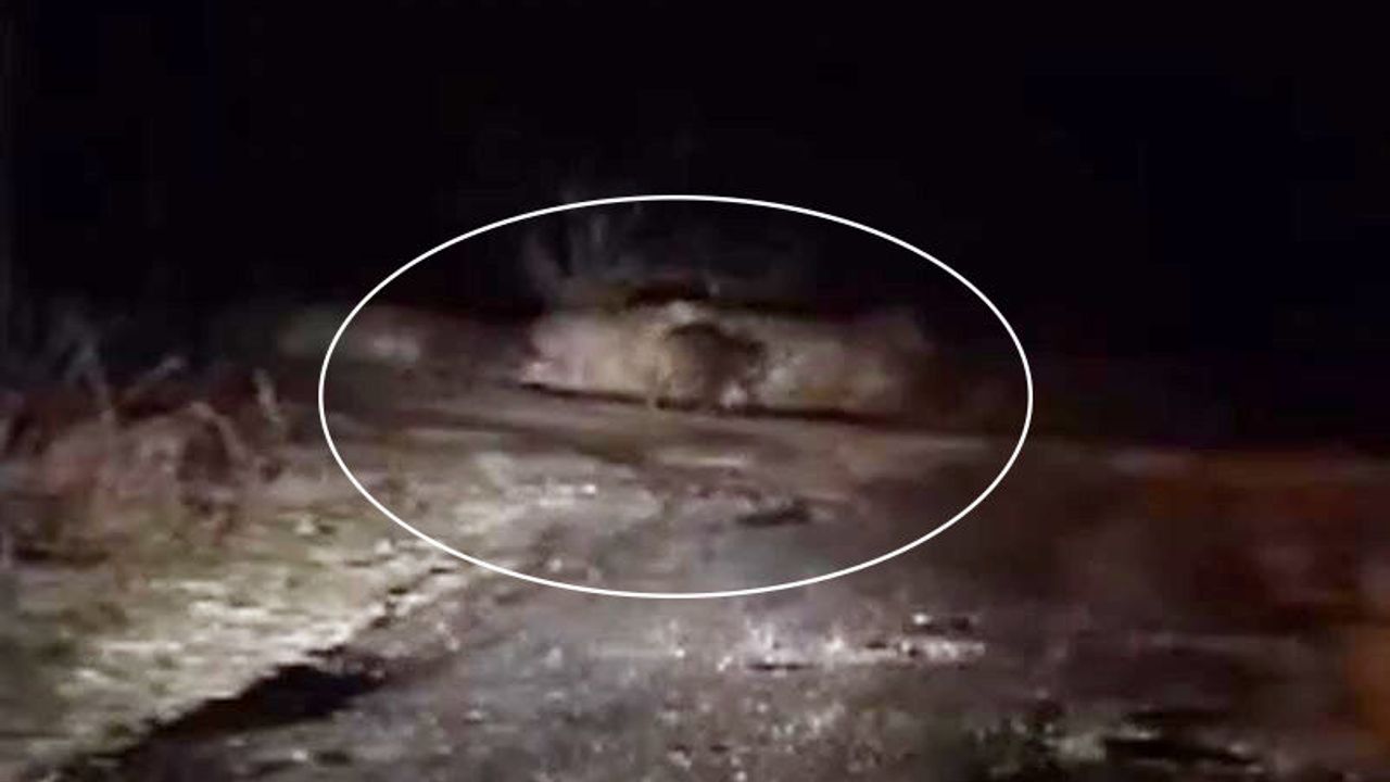 Edinilen bilgilere göre, akşam saatlerinde aracıyla evine gitmekte olan Ahmet Yamlı, yol üzerinde aniden domuz sürüsüyle karşılaştı. O anlar yanında bulunan kişiler tarafından cep telefonu kamerasıyla kaydedildi.