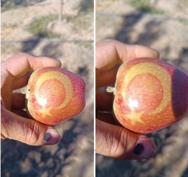 Bitlis’in Ahlat ilçesinde çiftçilik yapan Bünyamin Çırak, elma ağaçlarında dikkat çeken bir denemeye imza attı. Çırak, elmalar dalındayken ay-yıldız şeklinde maske yerleştirerek, güneş ışığıyla meyve üzerinde doğal figür oluşmasını sağladı. Güneşte kızaran elmalarda ay-yıldız şekli belirgin şekilde ortaya çıktı. Denemeyi birkaç elmada yaptığını belirten Çırak, gelecek yıl bir ağacın tamamında ay-yıldız figürlü elma üretmeyi hedeflediğini söyledi.