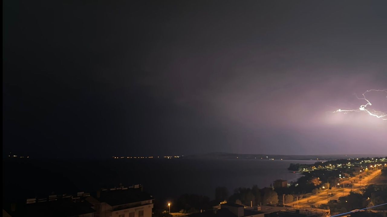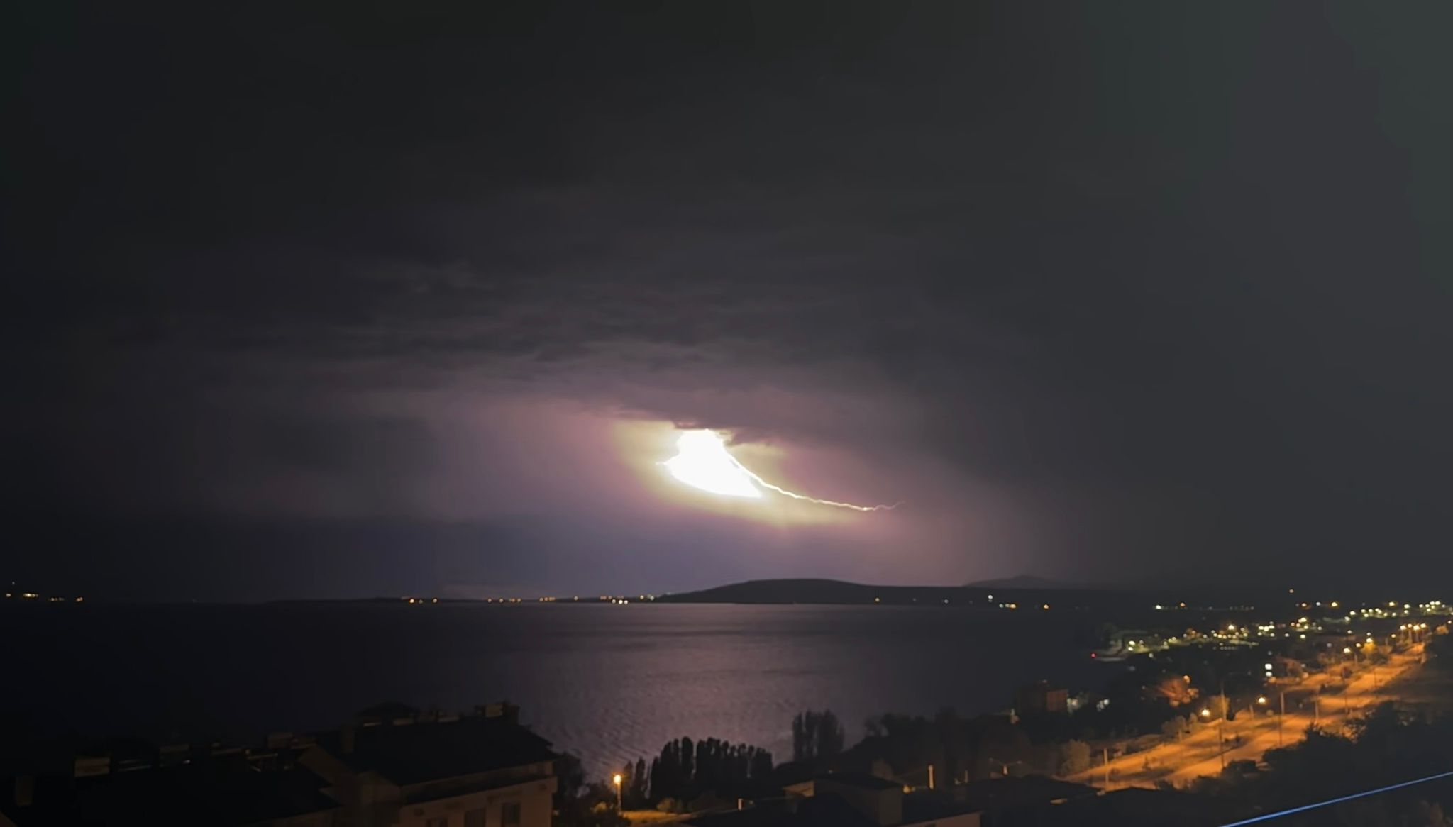 Bitlis’in Ahlat ilçesinde gece çakan şimşekler, adeta görsel bir şölen sundu. Gökyüzünü aydınlatan şimşekler, ilçede yaşayan vatandaşlar tarafından hayranlıkla izlendi. Doğa olayına tanıklık eden bazı vatandaşlar o anları cep telefonlarıyla görüntülemeyi de ihmal etmedi. Özellikle Van Gölü kıyısında ve yüksek kesimlerde etkili olan şimşekler, gecenin karanlığında eşsiz manzaralar oluşturdu. Gök gürültüsünün etkili olduğu dakikalarda ilçenin birçok noktasından izlenebilen şimşekler, doğa ve fotoğraf tutkunları için adeta bir görsel şölen sundu.